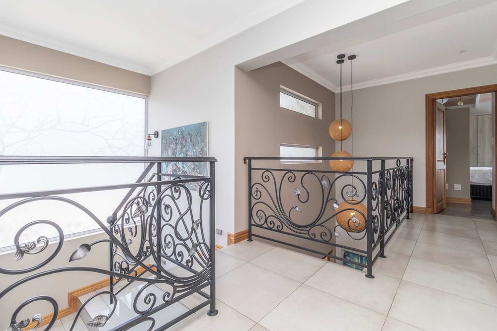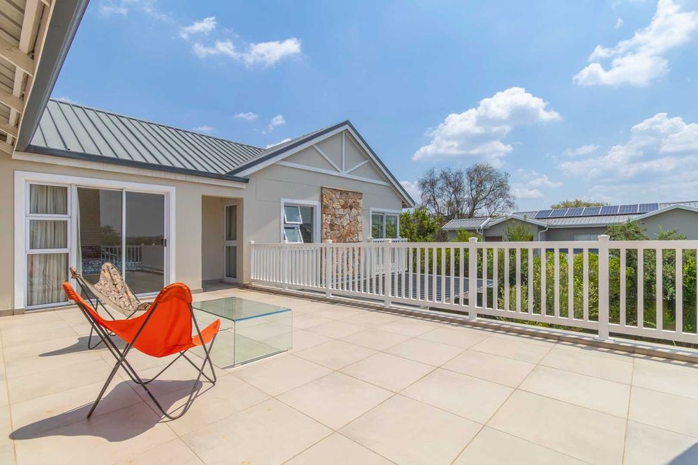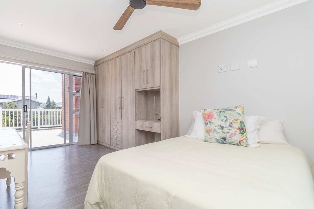 Additional features which further enhance the home are a staff toilet and shower, automated double garage with storeroom, 2,050L backup water tank, 12 KW Solar Sunsynk inverter system with 10.65KWbattery and 14 x 460W JA Solar panels as well as Solar geysers.