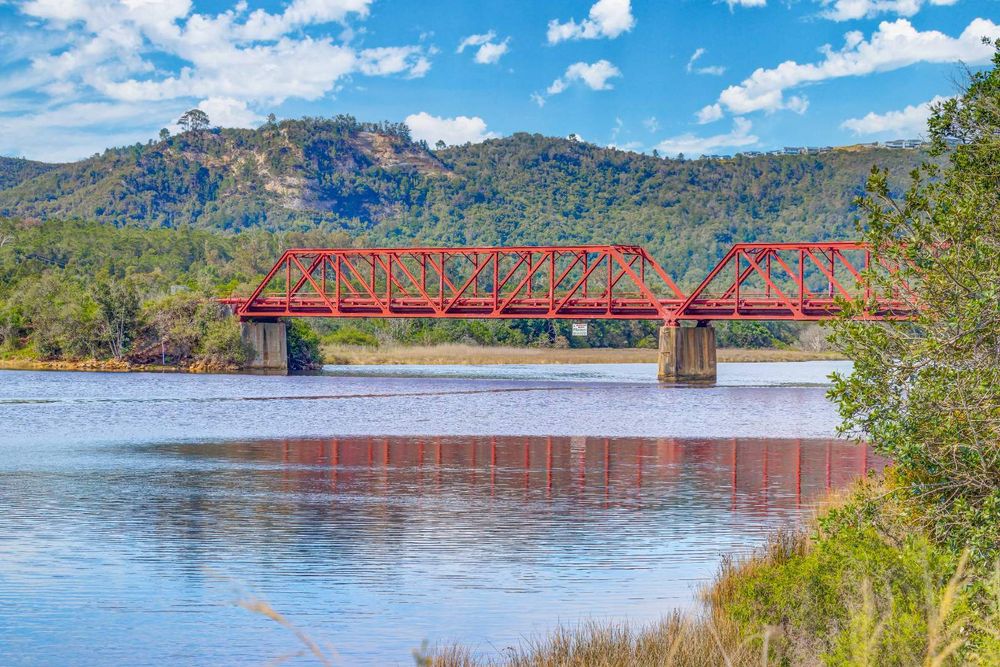 From its elevated sections, the land enjoys sweeping views toward the Knysna Heads, the upper reaches of the Knysna River and the Outeniqua Mountains. The property also includes approximately 400 metres of frontage along the Knysna River, adding both scenic appeal and valuable natural character.