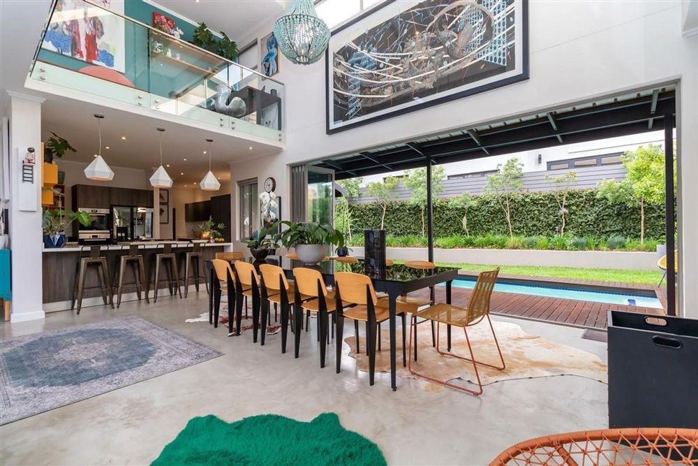 The home accommodates a double volume entrance hall exposed to an expansive open plan living space, incorporating the dining and lounge that is enhanced by a slow burning fireplace. The custom designed kitchen fully services the living space and includes a separate scullery.