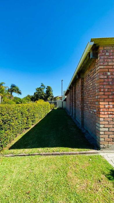 Two-bedroom, two-bathroom ground floor apartment in Knysna Central, sleeps 4, with open parking and patio.