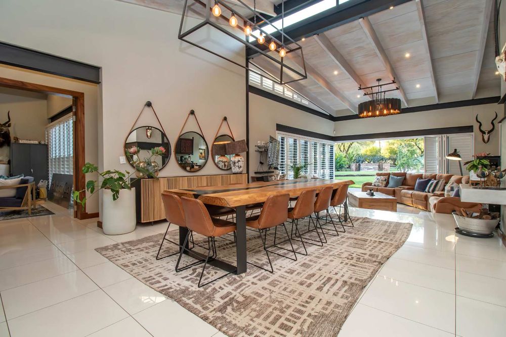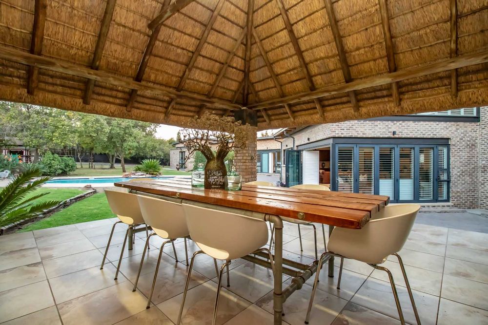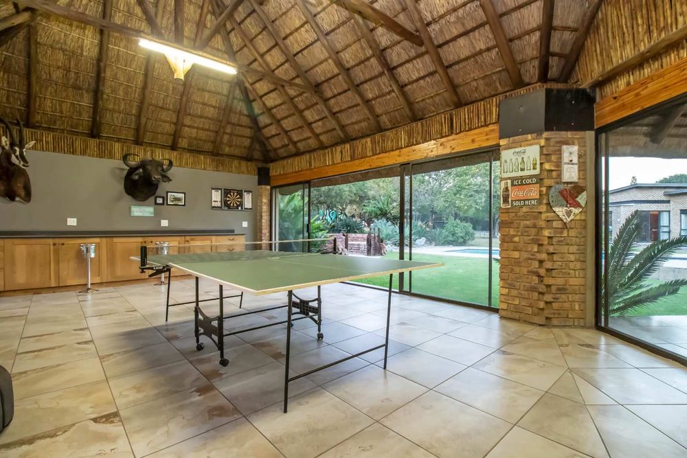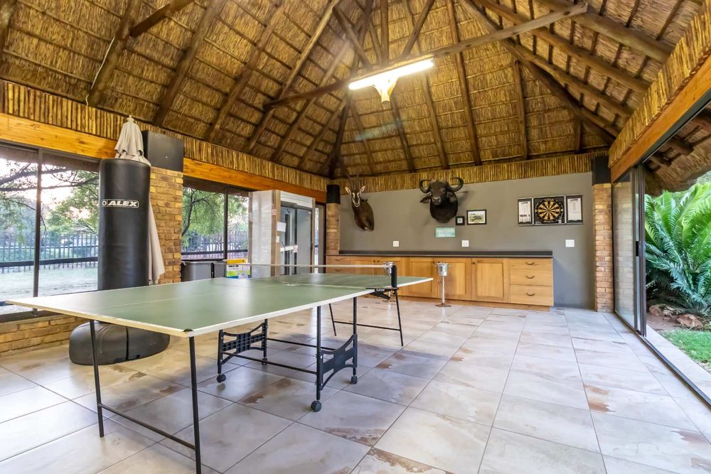 The African inspired Lapa with glass enclosed games room and outdoor boma with fire pit is an entertainer’s delight, especially to enjoy dining under the African sky.