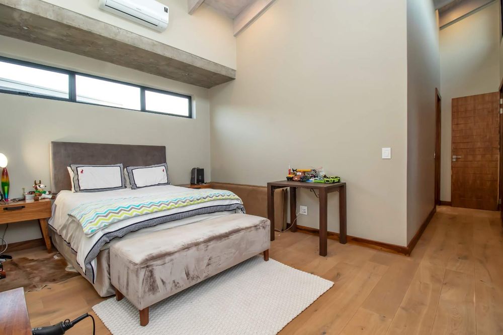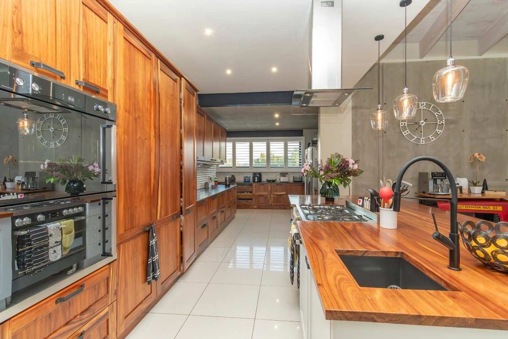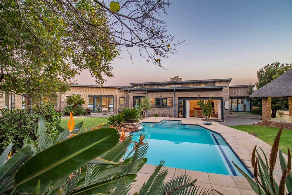 Additional features include: two double automated garages plus a car port, staff accommodation with separate entrance and /utility room adjoining the garages, two boreholes with storage tanks that provide water to the home and garden, grey water filtration system with storage tank, securi shutters and air conditioning throughout, temperature-controlled gas geysers, double glazed windows and backup generator for power outages.