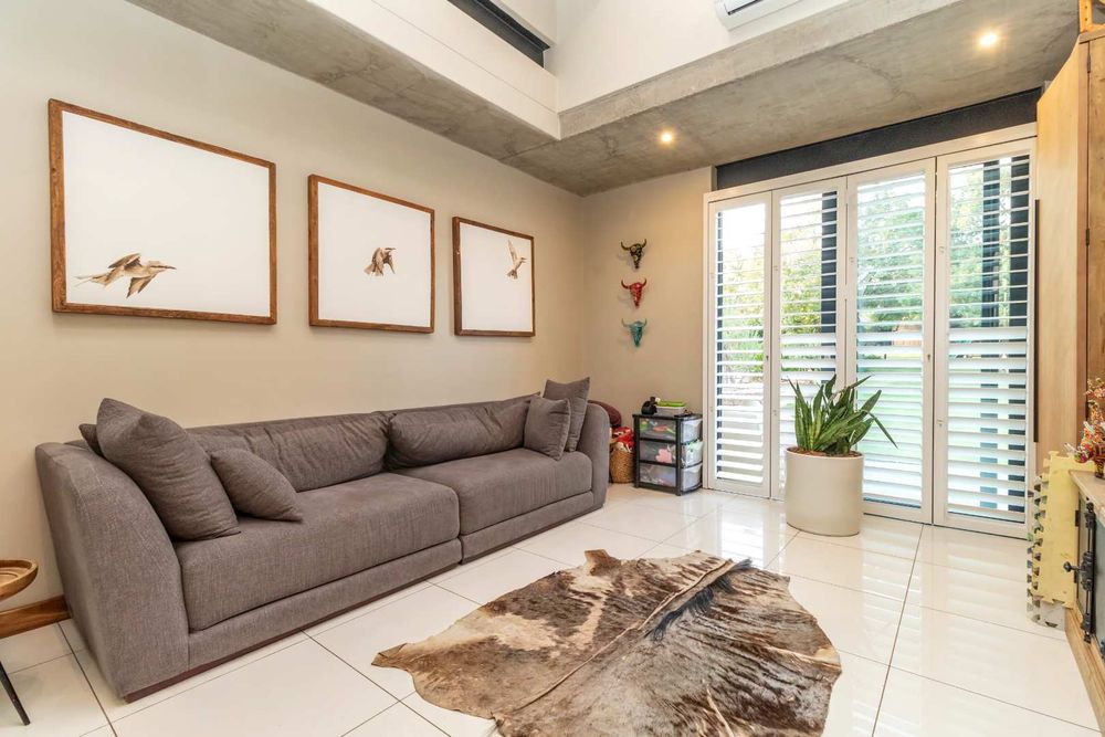 An exciting opportunity to own this modern home in Beaulieu Estate which offers you a chance to embrace a safe, country lifestyle while still being close to all the suburban amenities. Experience luxury living in this expansive, single-story home designed by Architect, Gillian Holl, who is renowned for her bold, modern designs and for being passionate about sustainable architecture. Solid and engineered wood, exposed metal beams and concrete slabs are interesting finishes of the home.