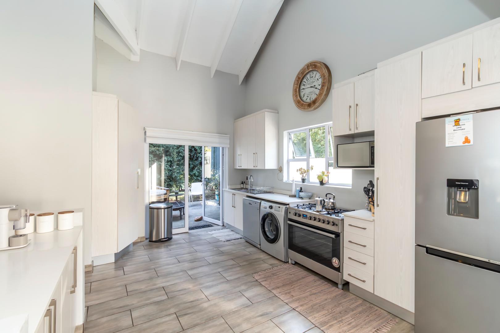 The main house takes centre stage. The double story home offers expansive living spaces providing ample room for relaxation and enjoyment. A cosy formal lounge connects seamlessly to the dining room and kitchen which is equipped with gas stove and ample built-in cupboards. Completing the ground floor is a lovely bedroom and bathroom. The first floor accommodates two delightfully sized bedrooms and bathrooms, one of which is en -suite.