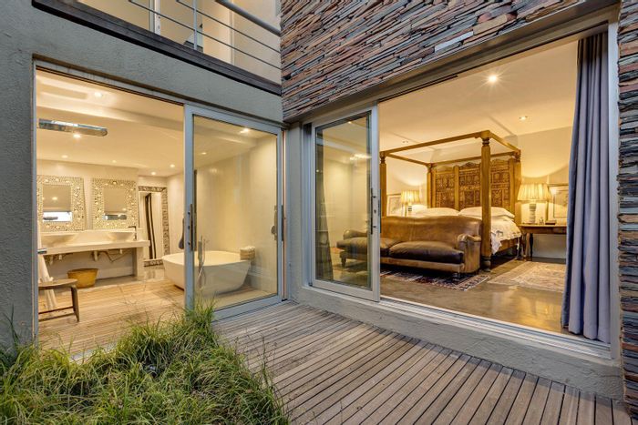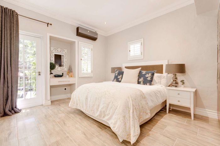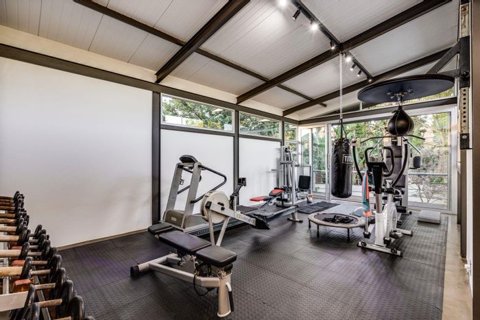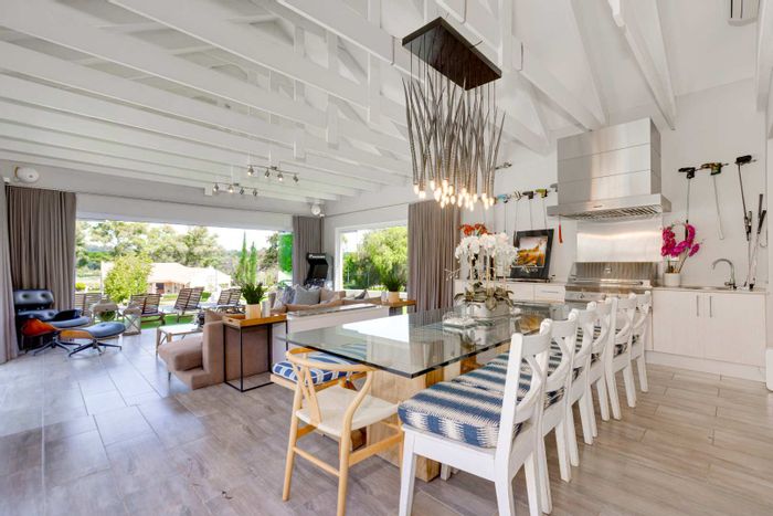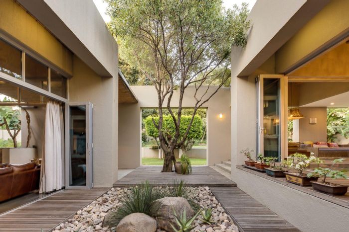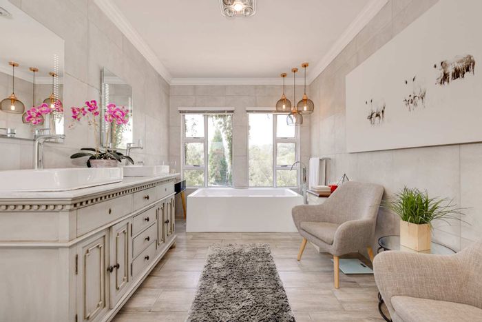 Entertain effortlessly in this private Midrand estate retreat with lush landscaped gardens and Al Fresco patios, temperature-controlled wine room, gym and five bedrooms, triple garage.