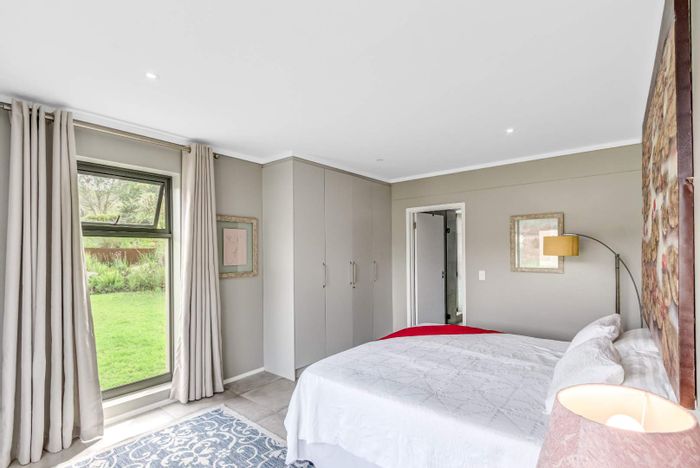 Downstairs, two en-suite bedrooms share a large living space with indoor braai and kitchenette, leading out to rolling lawns and a lush garden. Upstairs, a separate flatlet with its own bedroom, bathroom, and balcony makes the perfect guest suite or income-generating rental.