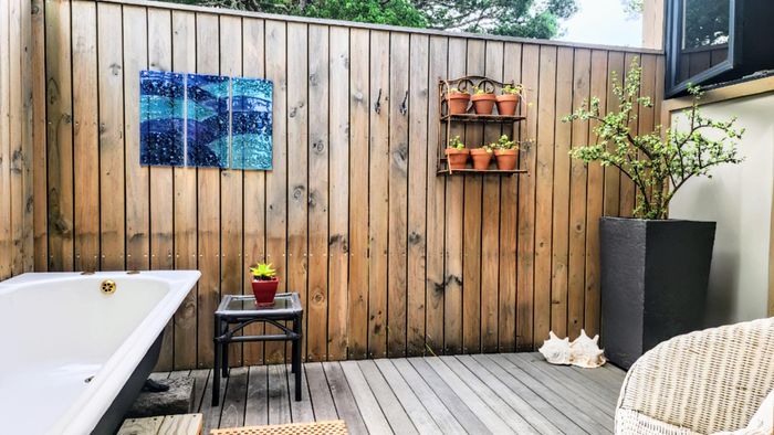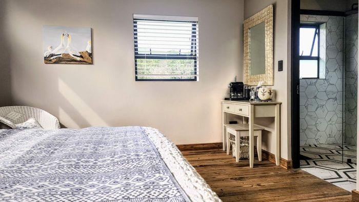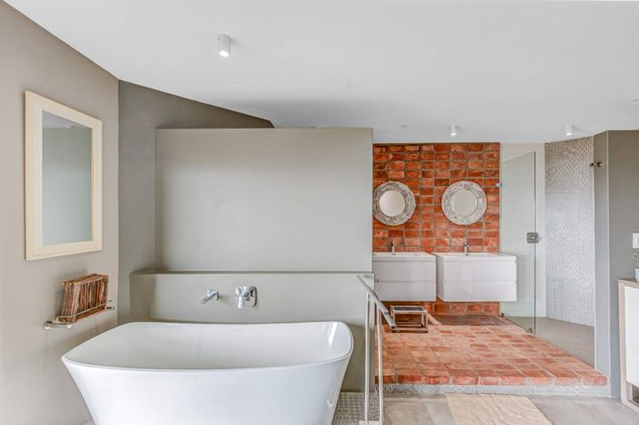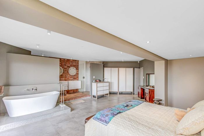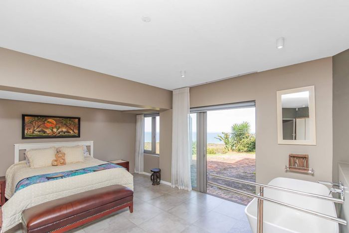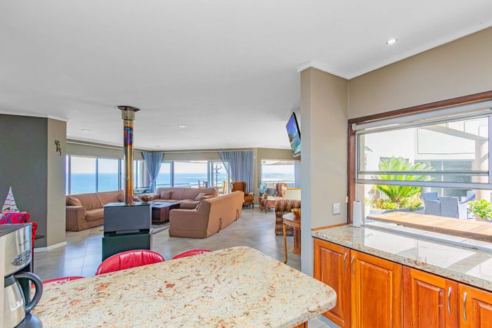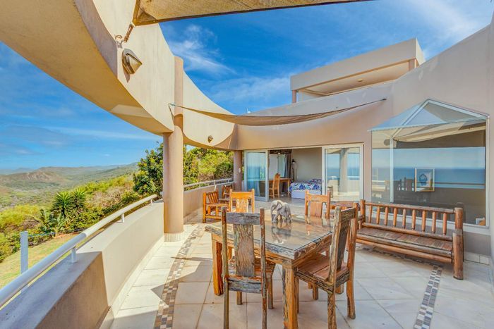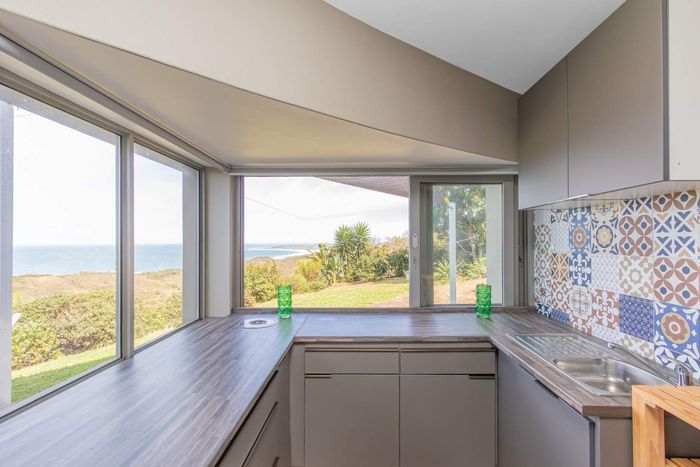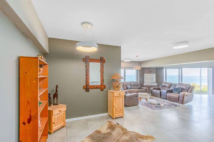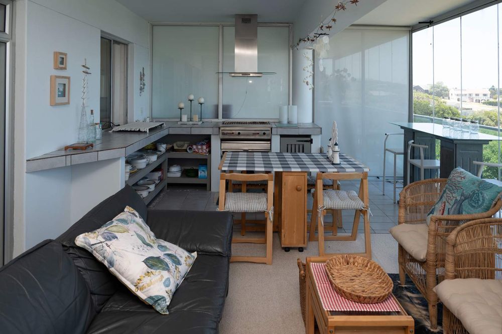 Two Spacious open-plan lounges and dining areas opens onto expansive north facing wooden decks perfectly suited for entertaining and well protected from prevailing southern winds. Spacious kitchens leading to a separate enclosed braai room with stacking doors overlooking the Indian ocean where whales are regularly spotted between May and November each year. The main bedroom are is en-suite, lots of cupboard space with a separate toilet and a private balcony.