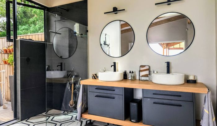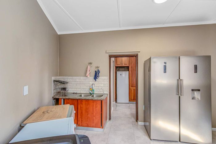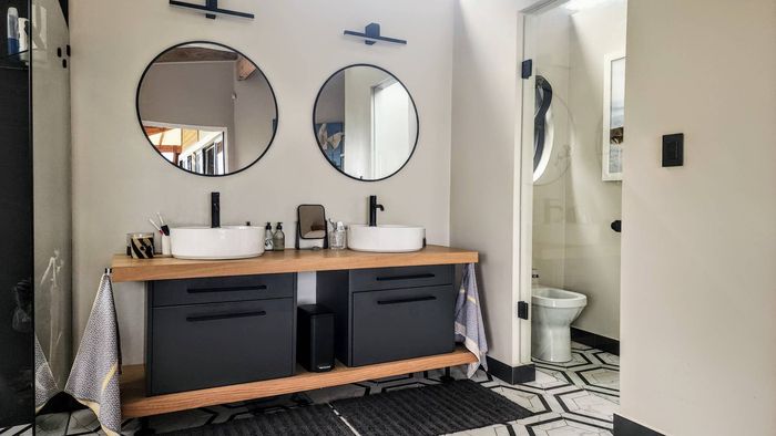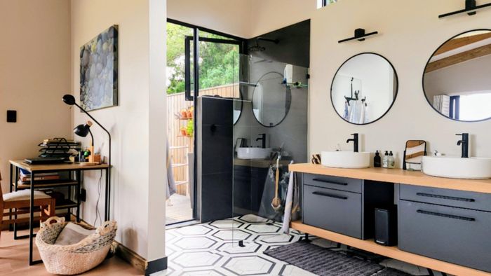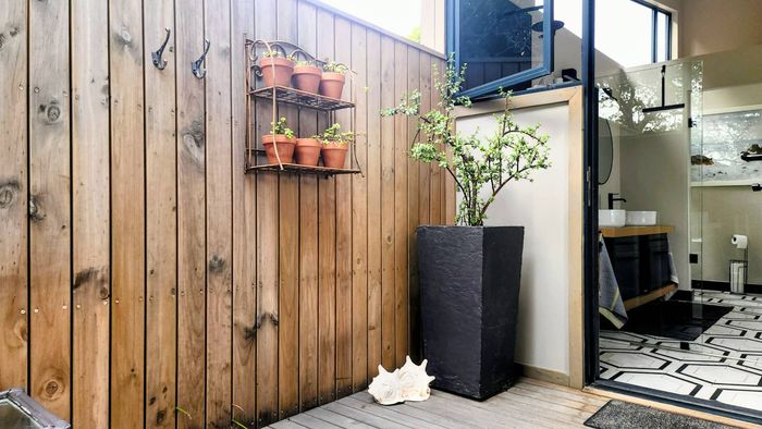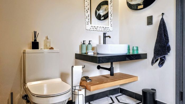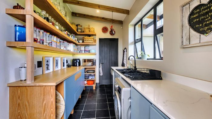 Two generous rooms, each with its own shower, toilet, and basin, plus private laundry facilities. One room has been divided into two, offering flexible accommodation options. A practical storeroom is located beneath the staircase.