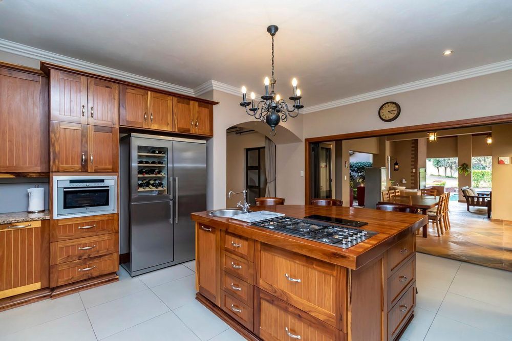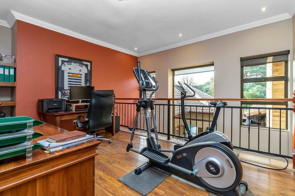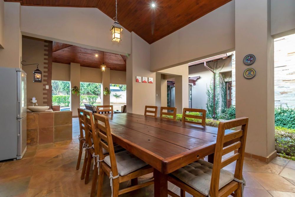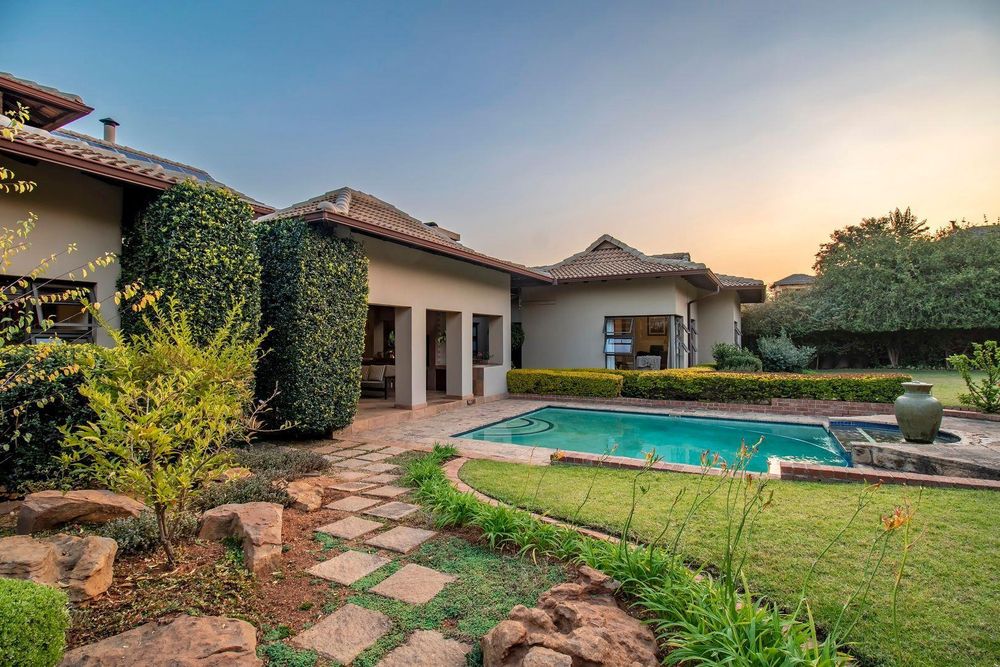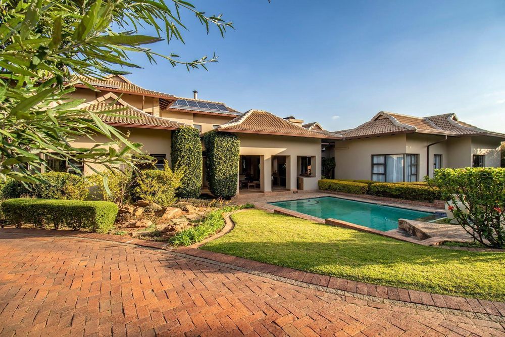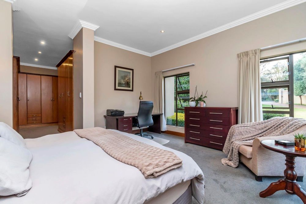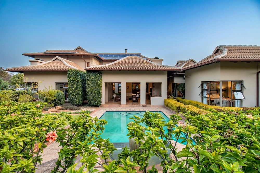 Set out over two principal floors, the tranquil entrance creates the setting as you enter into the double volume entrance hall. The expansive reception rooms flow onto the patio overlooking the feature swimming pool and unspoilt indigenous vegetation. The eat in gourmet kitchen with a separate scullery , services the reception rooms creating a lovely sociable ambiance, formal lounge, formal dining room, winter lounge ,a study area, guest cloakroom, two en- suite bedrooms and a master suite with its own private lounge, dressing room and full en-suite bathroom completes this floor.
