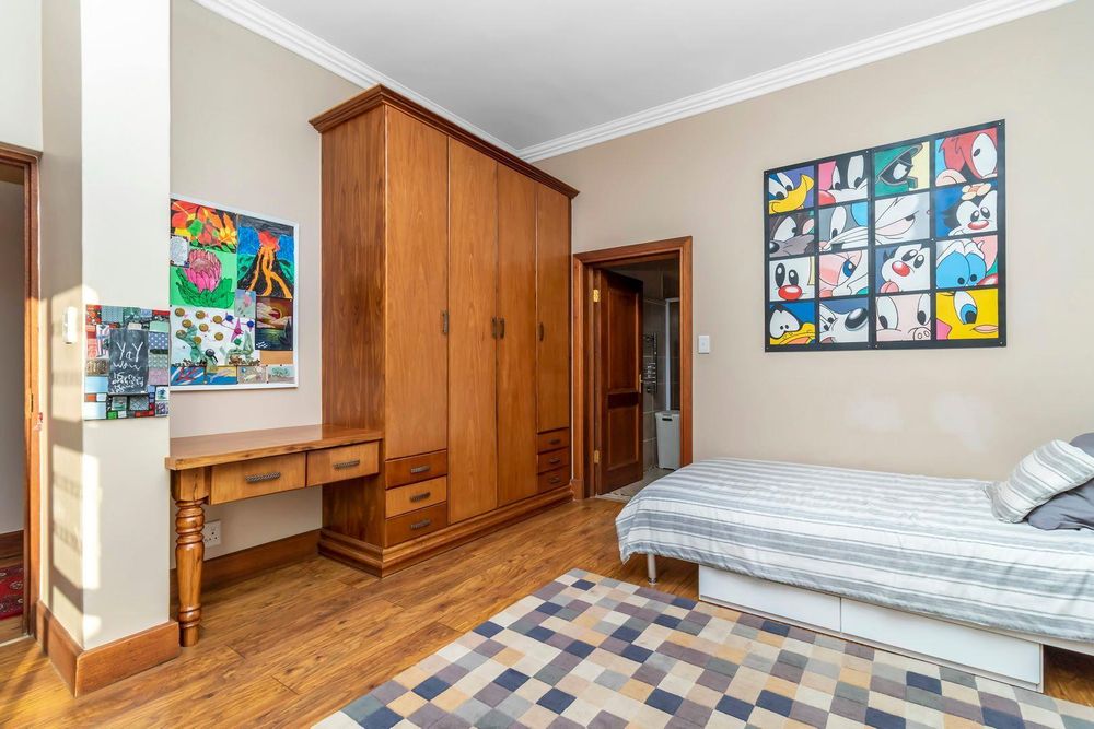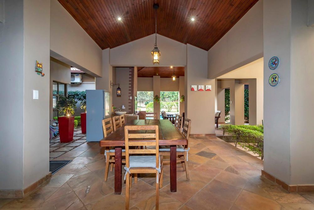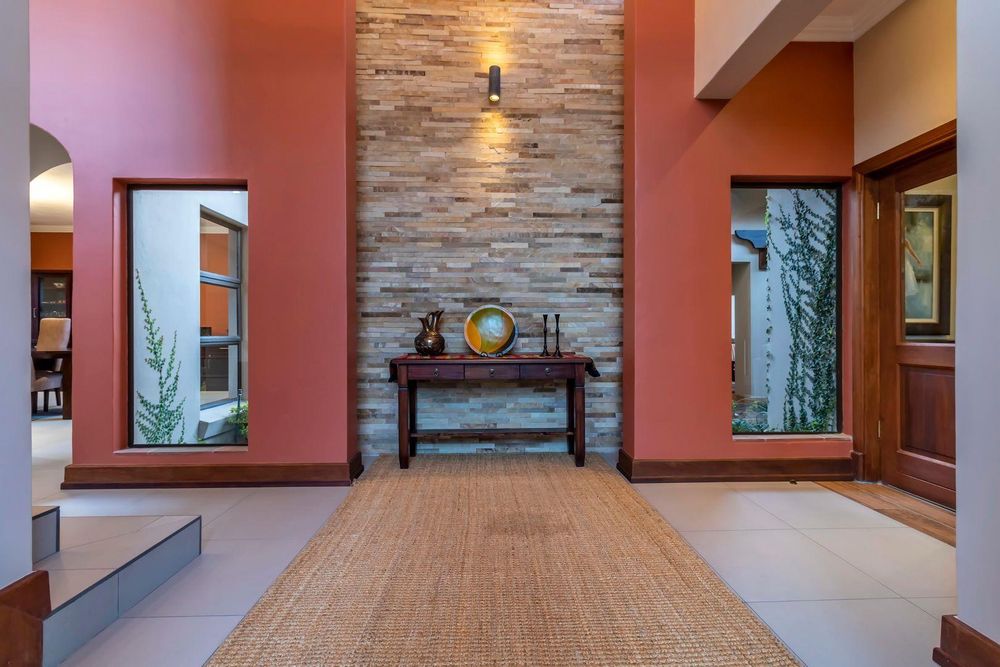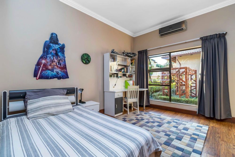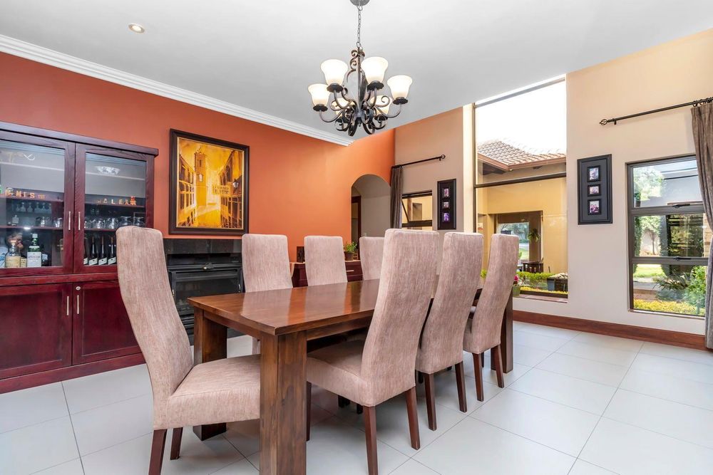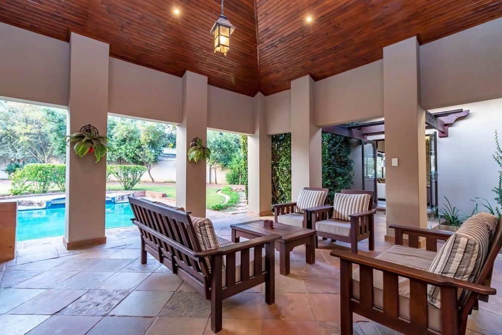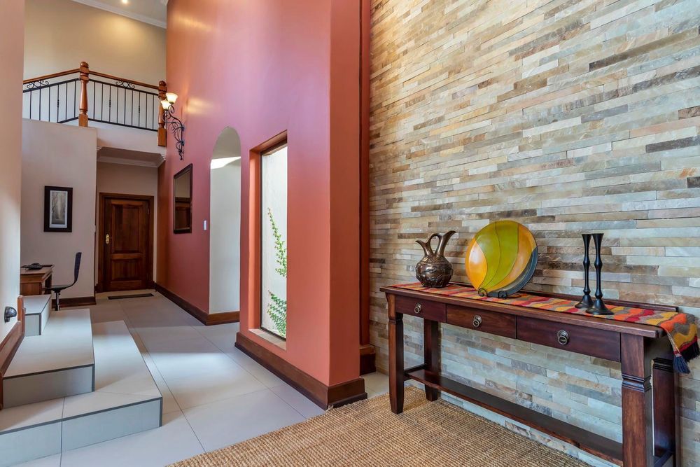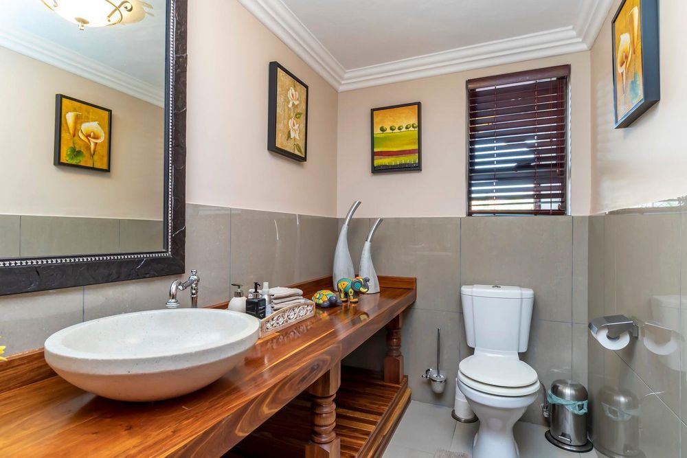 Set out over two principal floors, the tranquil entrance creates the setting as you enter into the double volume entrance hall. The expansive reception rooms flow onto the patio overlooking the feature swimming pool and unspoilt indigenous vegetation. The eat in gourmet kitchen with a separate scullery , services the reception rooms creating a lovely sociable ambiance, formal lounge, formal dining room, winter lounge ,a study area, guest cloakroom, two en- suite bedrooms and a master suite with its own private lounge, dressing room and full en-suite bathroom completes this floor.