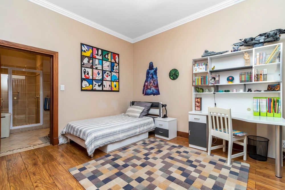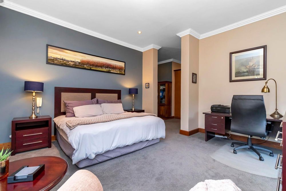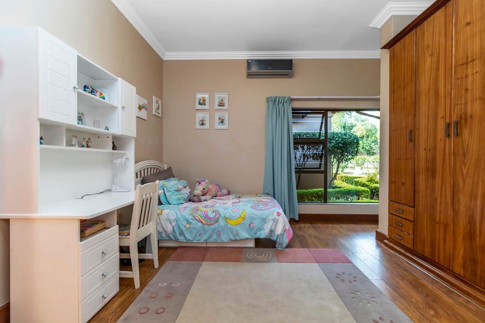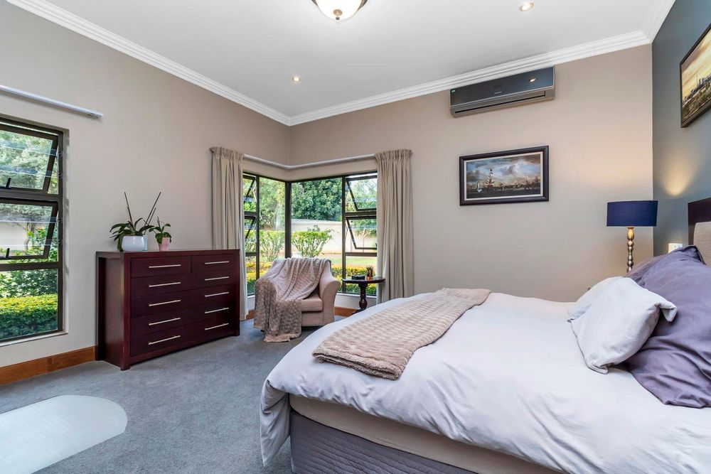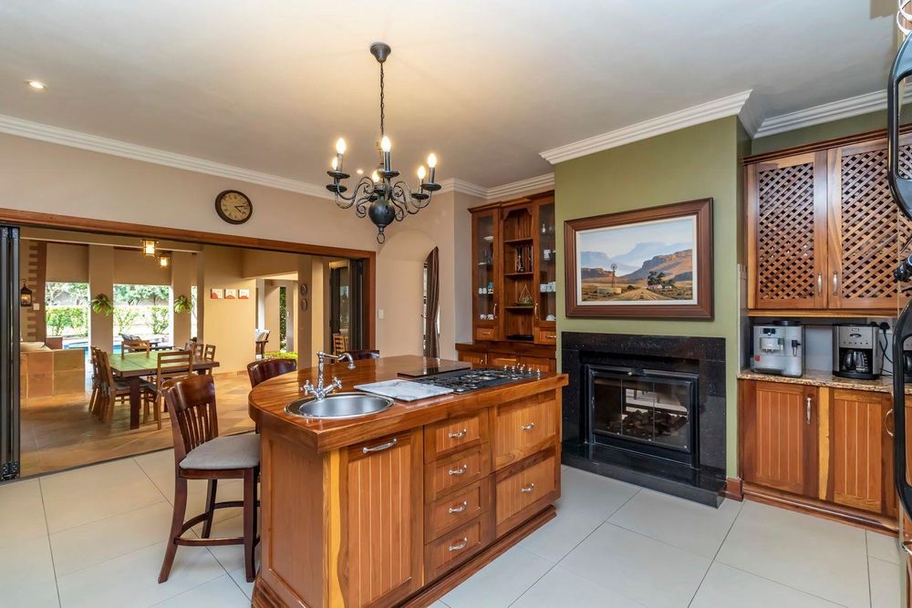 Three automated garages with storage, automated irrigation, bore hole, state of the art solar system with Inverter , staff accommodation, aircons and fireplace are some of the extras the home offers.
