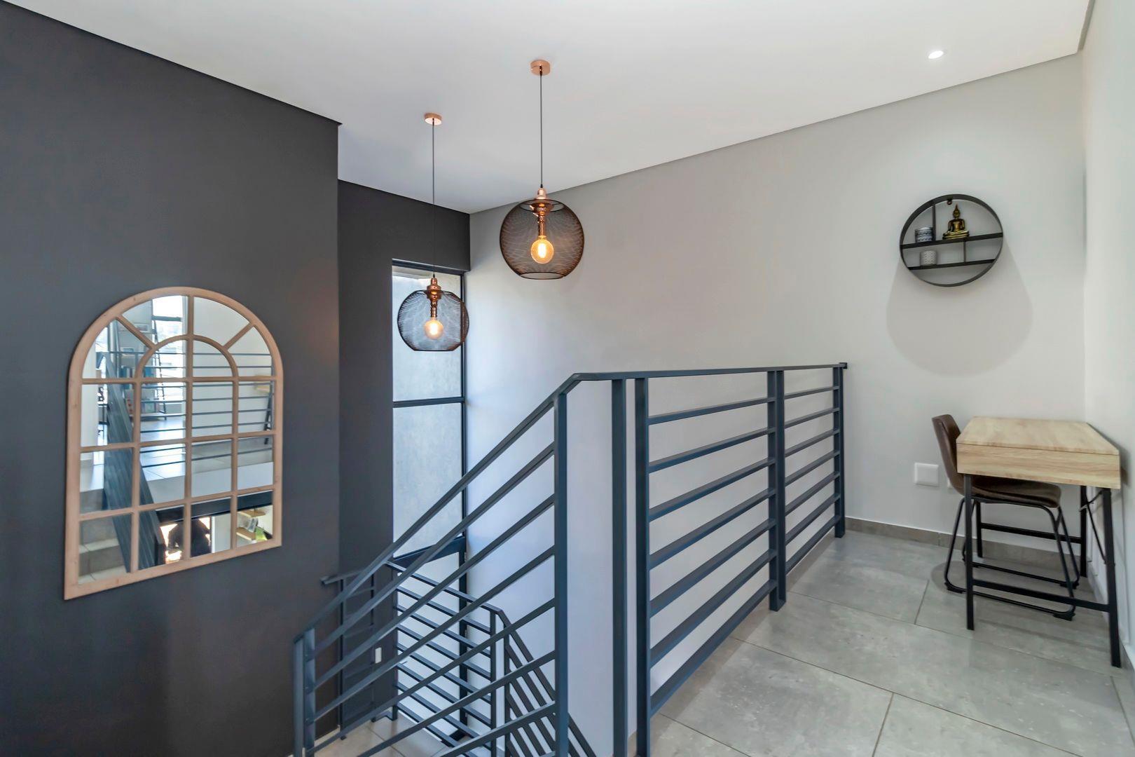 The industrial staircase leads to the first floor with a small landing utilised as a study nook. Light sunning first bedroom, second bedroom with a walk in dressing room both have the use of a well appointed full bathroom. The master bedroom includes fabulous cupboard space, large modern full bathroom with double vanity and a peaceful north facing bedroom where the large trees creates a lovely picture.