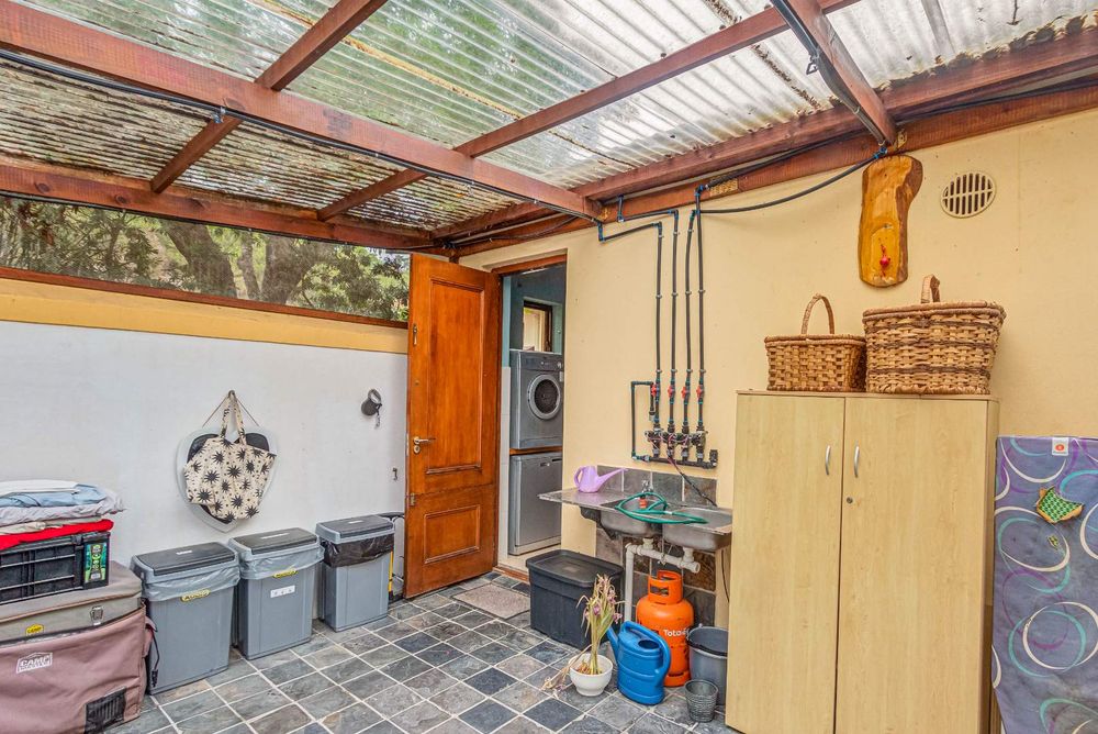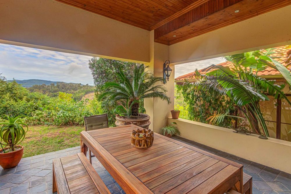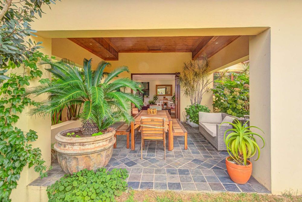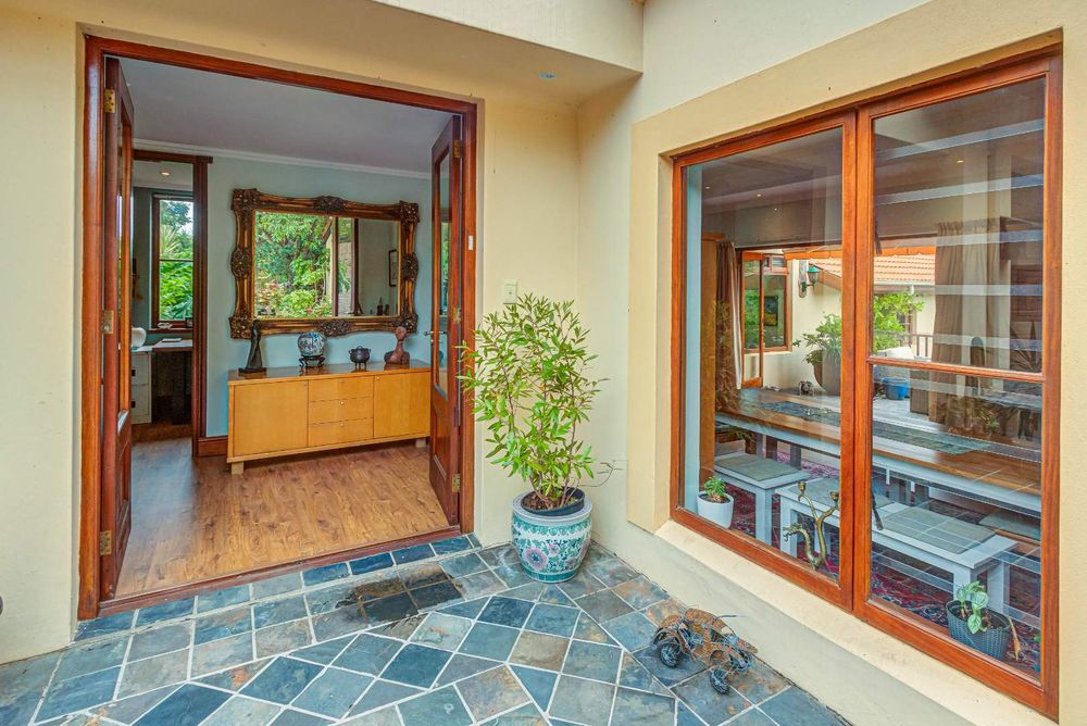 This garden is a true sanctuary, featuring many different fruit trees alongside numerous indigenous plants, creating a lush, private retreat.