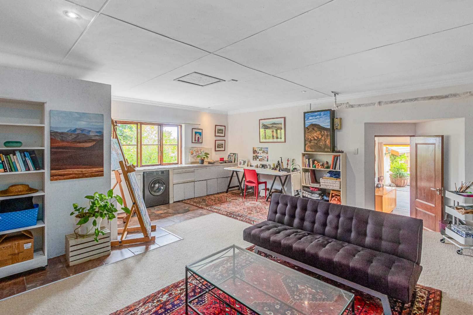 The large double garage, currently used as an art studio, relaxing – reading room, can easily be converted into another living room or large en-suite, guest bedroom or fully self-sustainable unit if needed, as there is already an existing bathroom with shower, basin and a toilet.