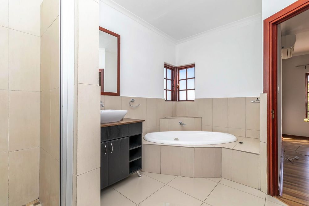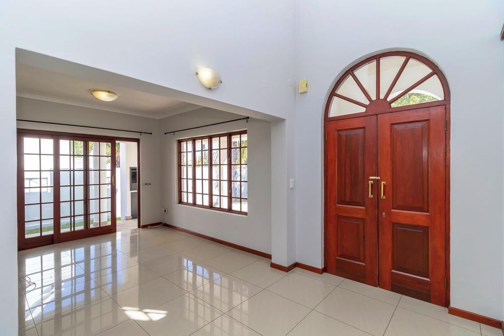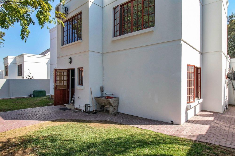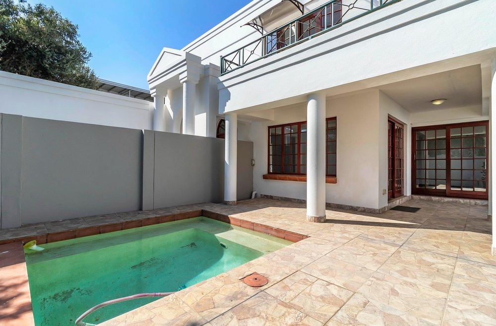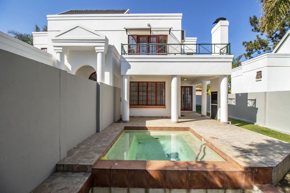 Additional features include a private patio with a swimming pool, a double garage, and the peace of mind that comes with secure estate living.
