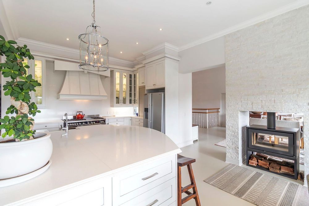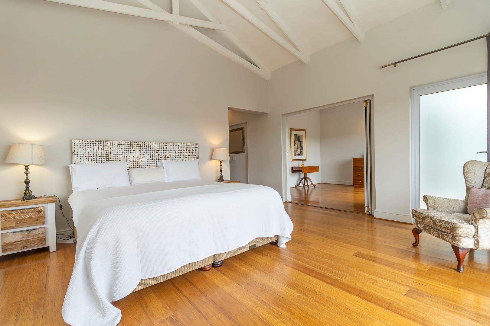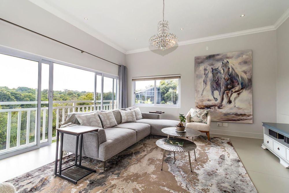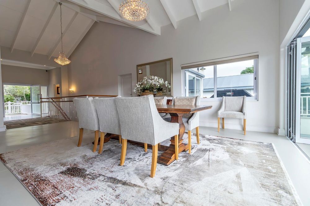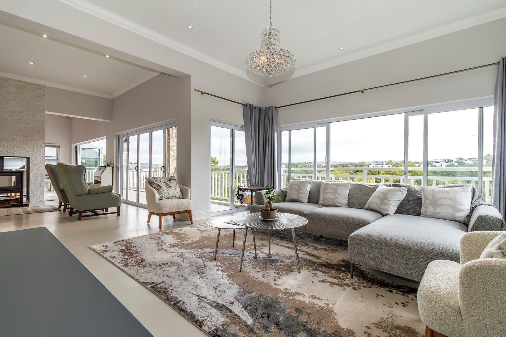 You are welcomed into the home through a stylish entrance hall where you are immediately greeted by the panoramic river views. This level accommodates the home office with a view, open plan designer kitchen, dining room and lounge with central double-sided feature fireplace. These spaces all flow through glass stacking doors onto a veranda from which a view of the river can be enjoyed. Continuing on this level is a separate scullery, walk-in pantry and separate laundry.