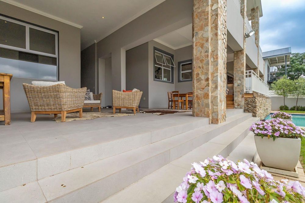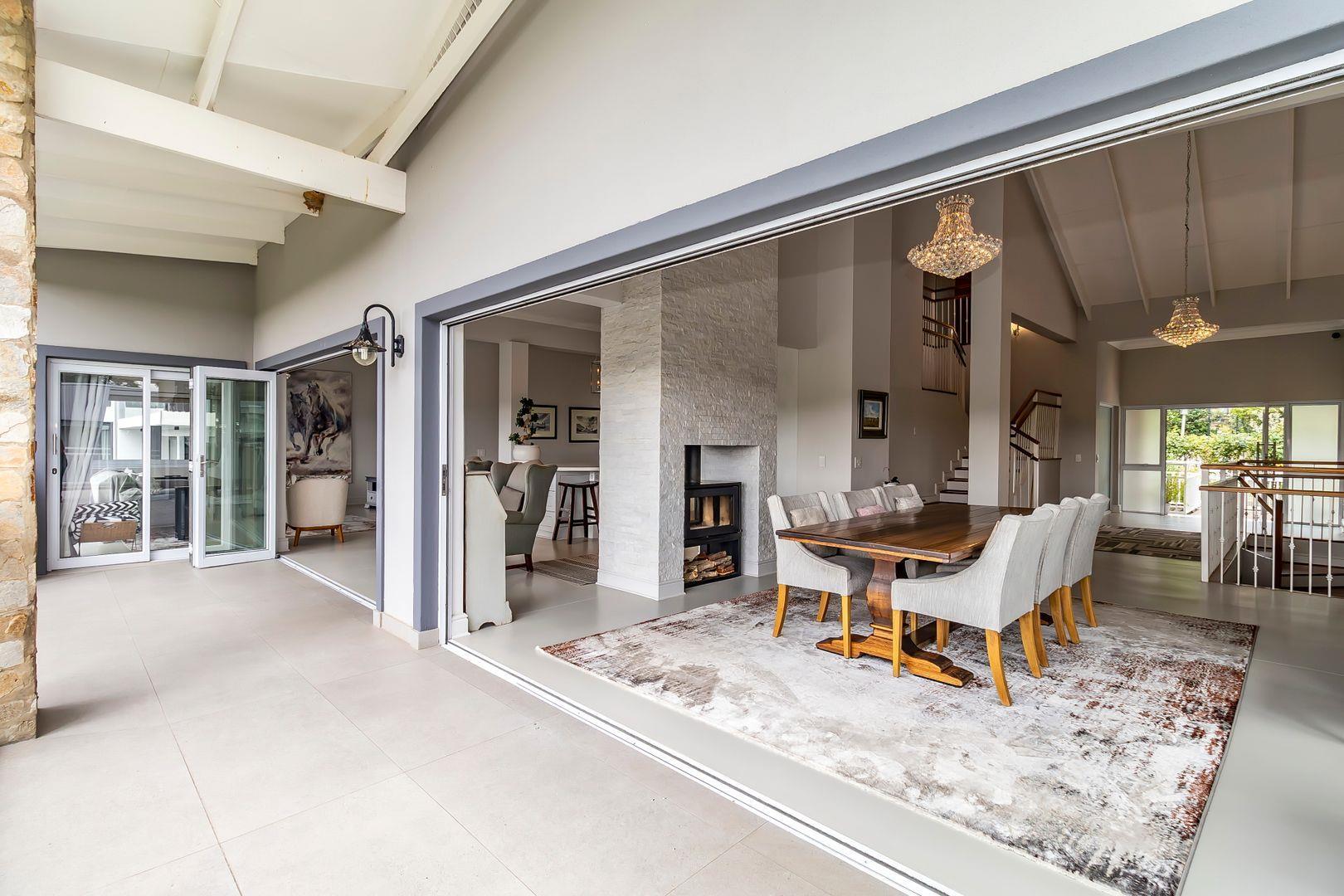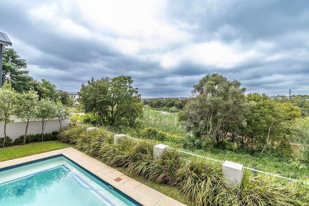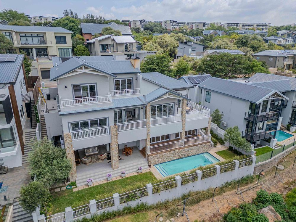 This spectacular contemporary three- story home is located on the riverfront in the sought after Helderfontein Estate and provides for glamourous living with the accent on entertaining on a grand scale.