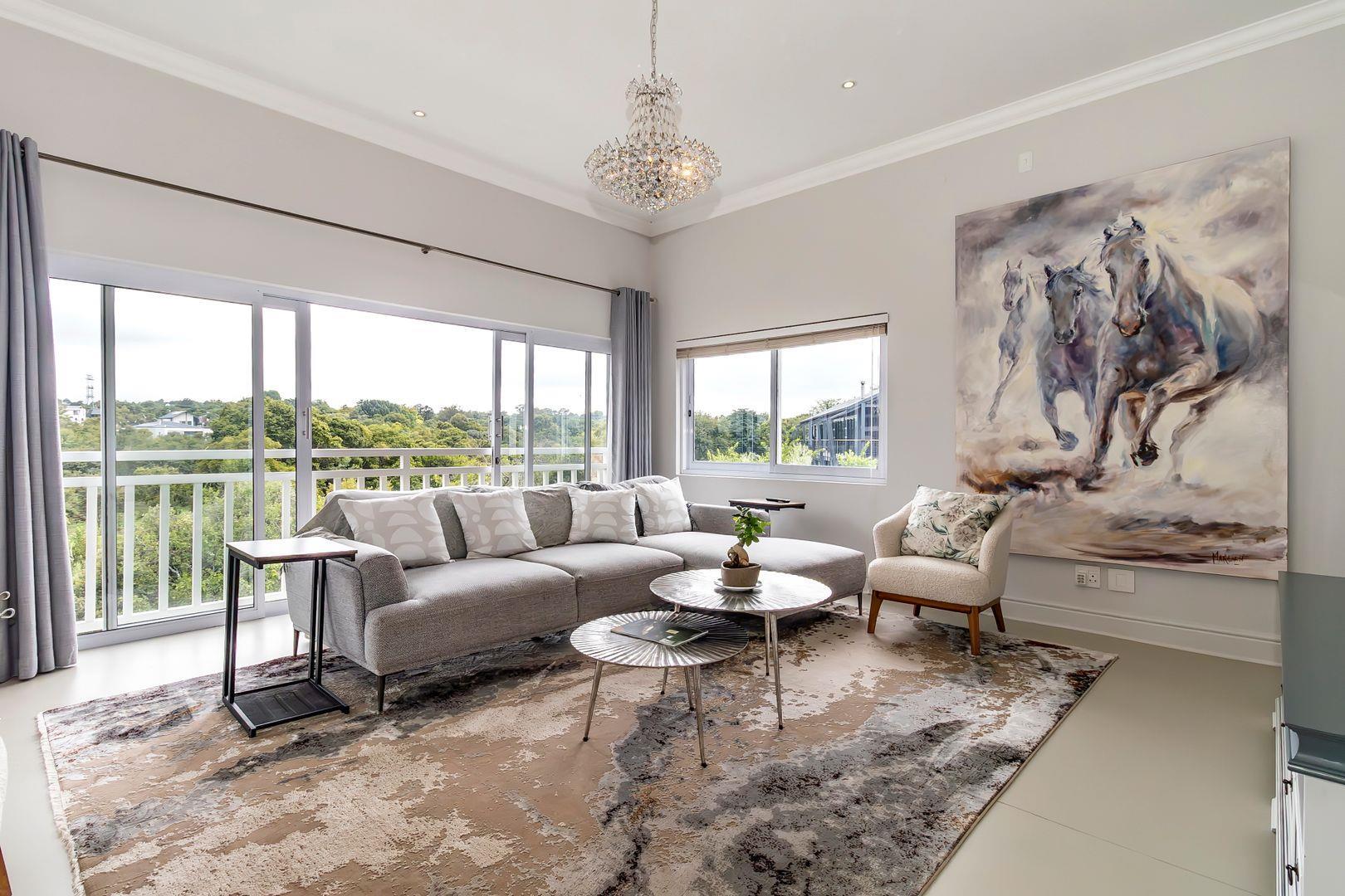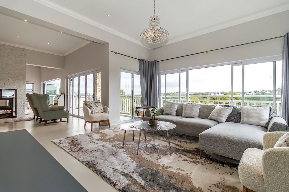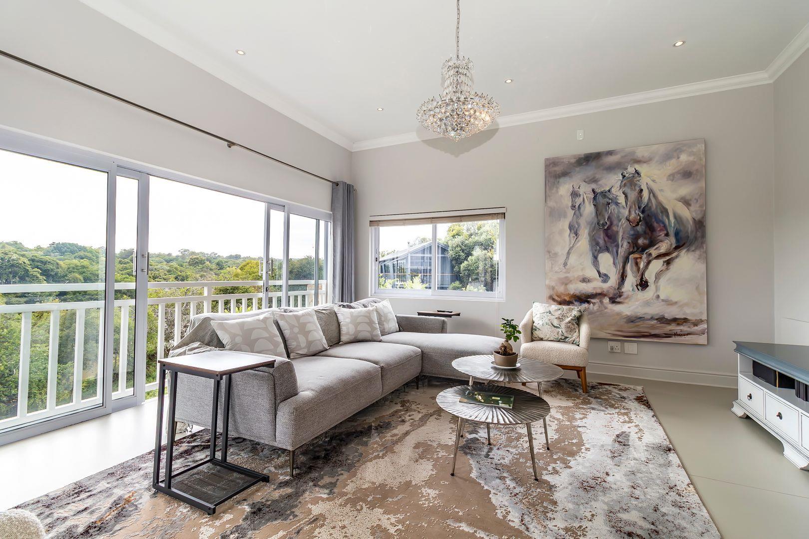 This spectacular contemporary three- story home is located on the riverfront in the sought after Helderfontein Estate and provides for glamourous living with the accent on entertaining on a grand scale.
