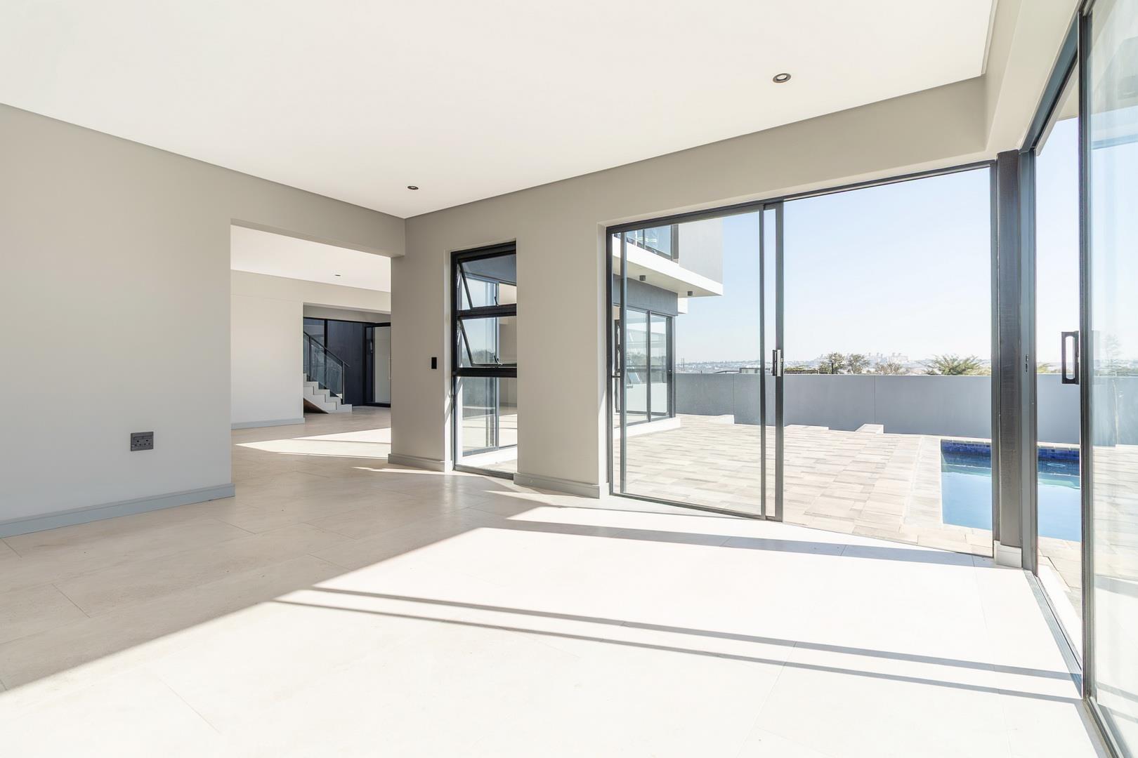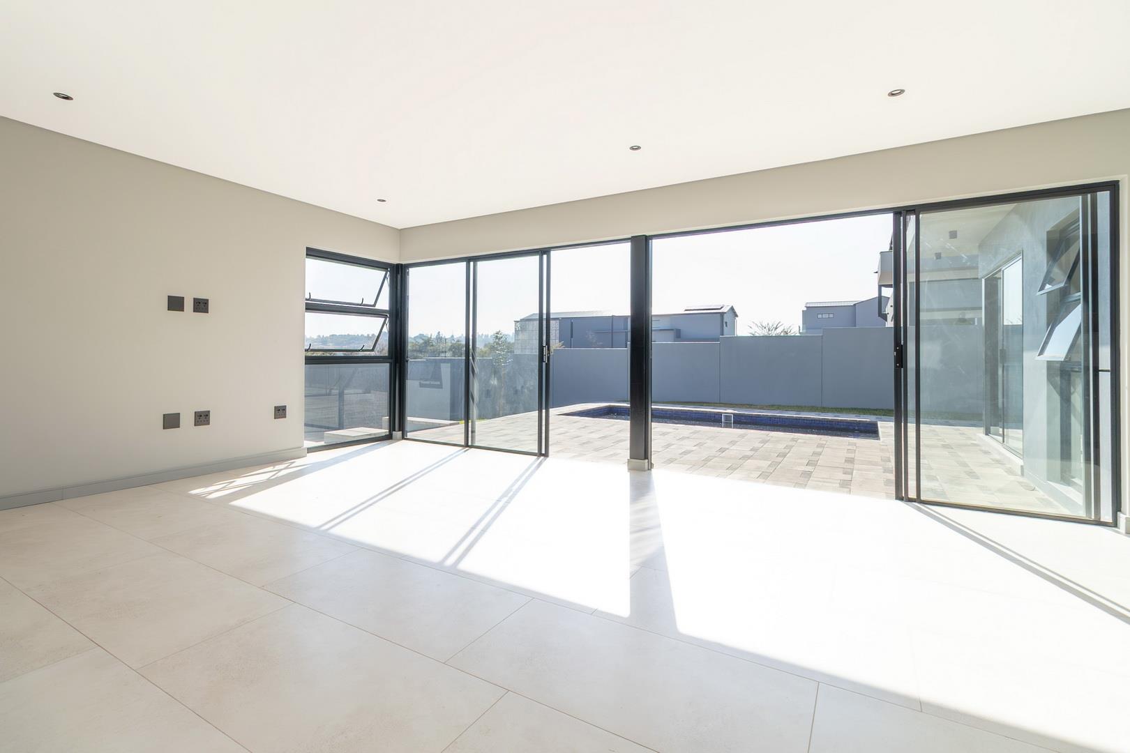 Designed for effortless living and entertaining, the home features a spacious open-plan layout that seamlessly integrates the lounge, dining area, enclosed patio with built-in braai and a sleek modern kitchen. The kitchen is equipped with gas hob, electric oven, convection microwave and is complemented by a separate scullery with space for three appliances and a walk-in pantry.