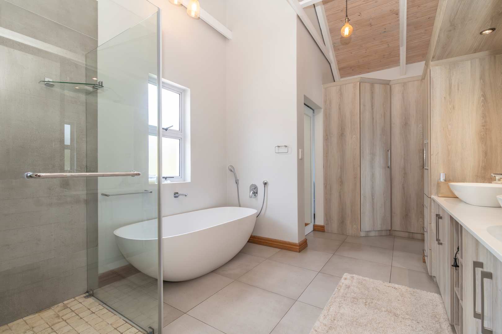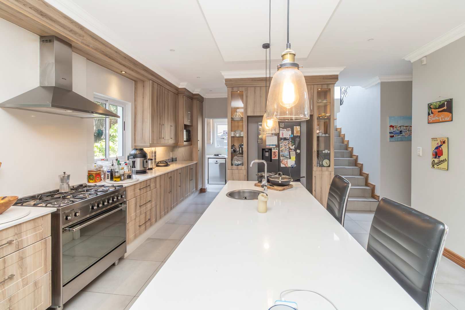 Additional features which further enhance the home are a staff toilet and shower, automated double garage with storeroom, 2,050L backup water tank, 12 KW Solar Sunsynk inverter system with 10.65KWbattery and 14 x 460W JA Solar panels as well as Solar geysers.