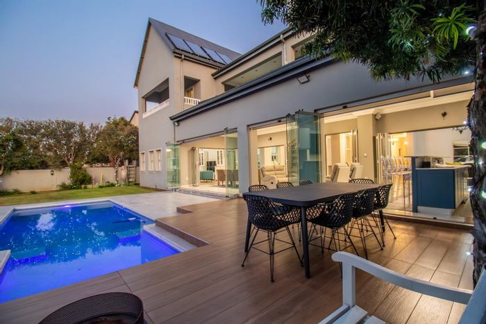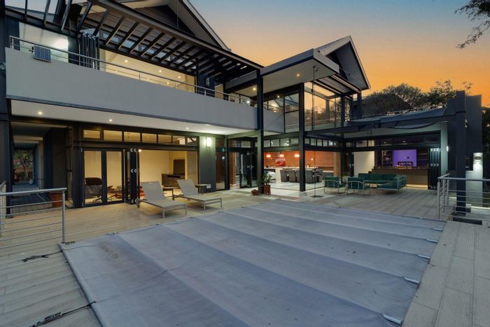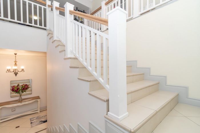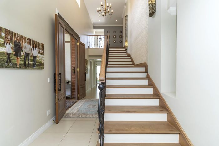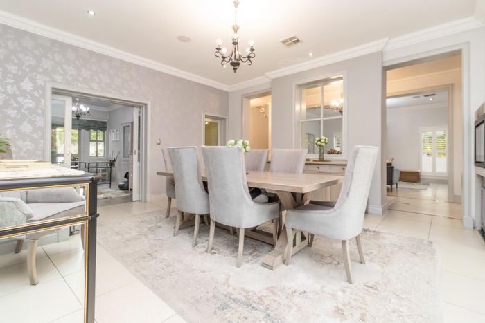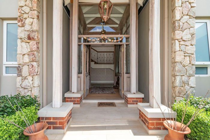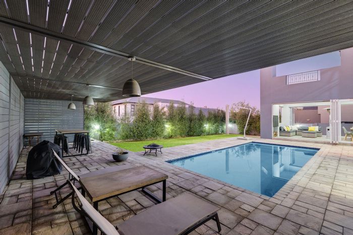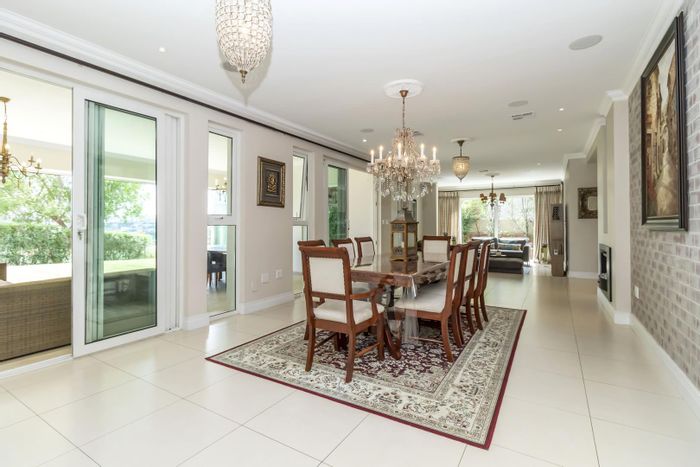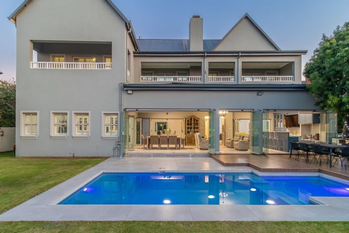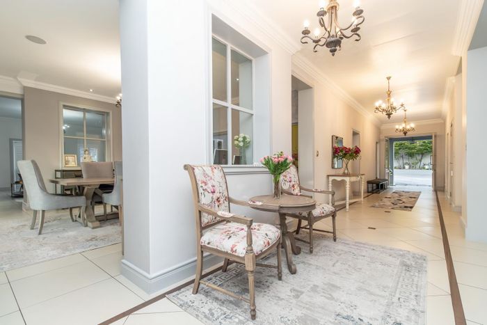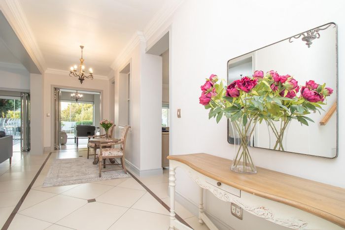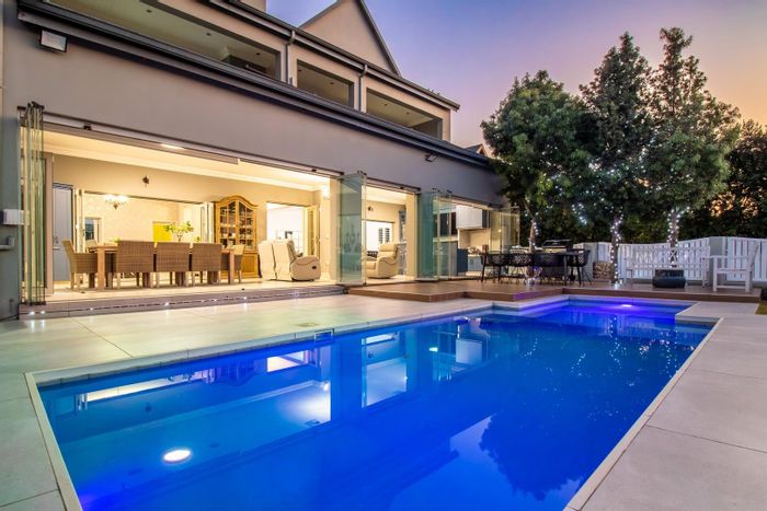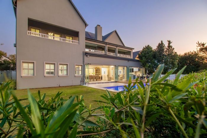 Classic family residence in Waterfall Country Estate with double-volume entrance, pool and gazebo with built-in braai — elegant master suite, sunny study, four-car garage; 4 beds, 3 baths.