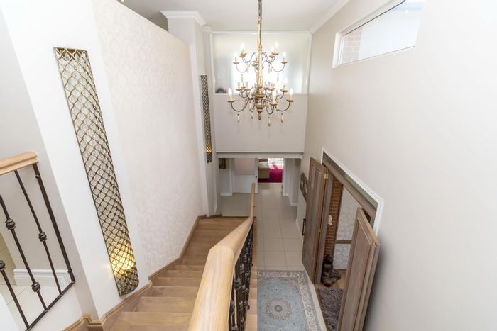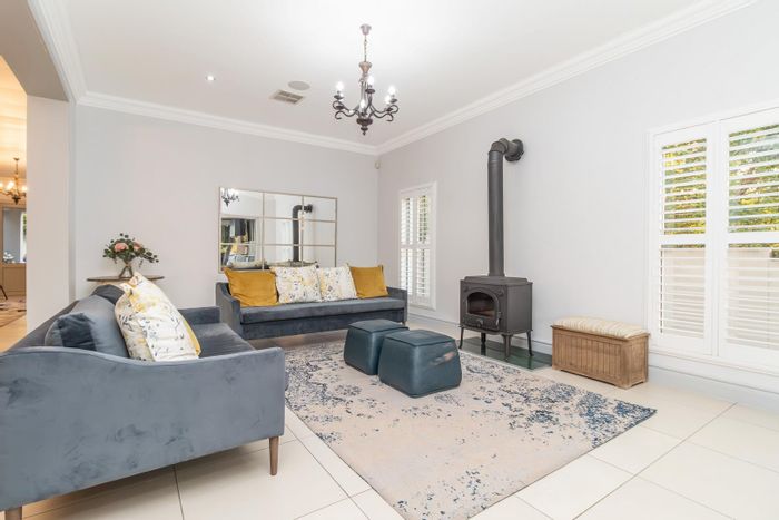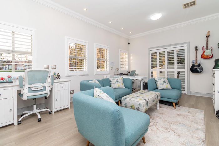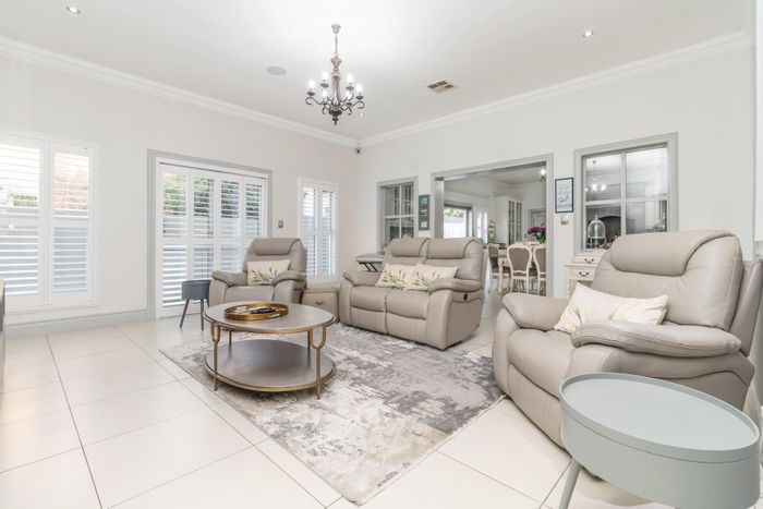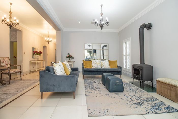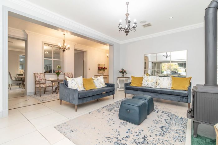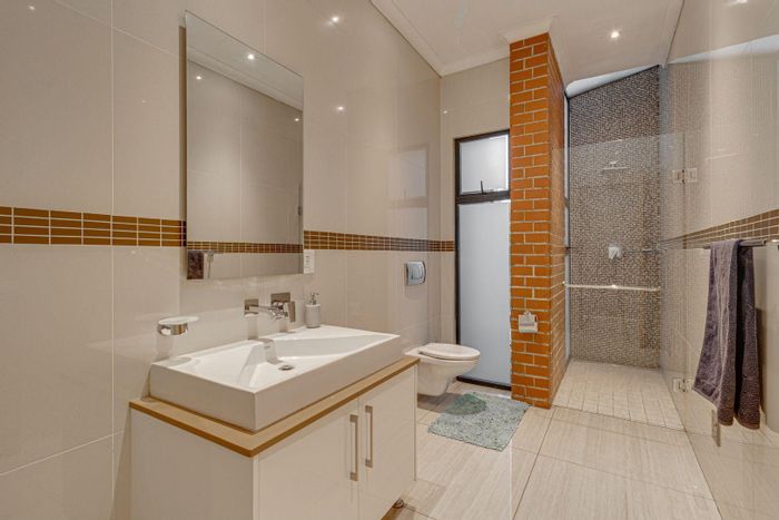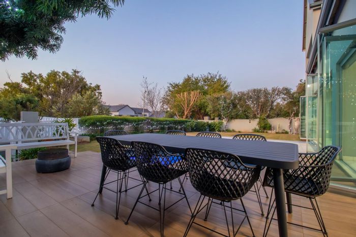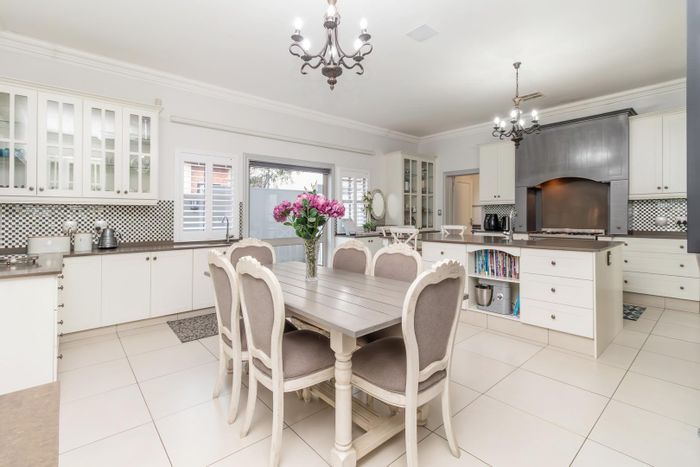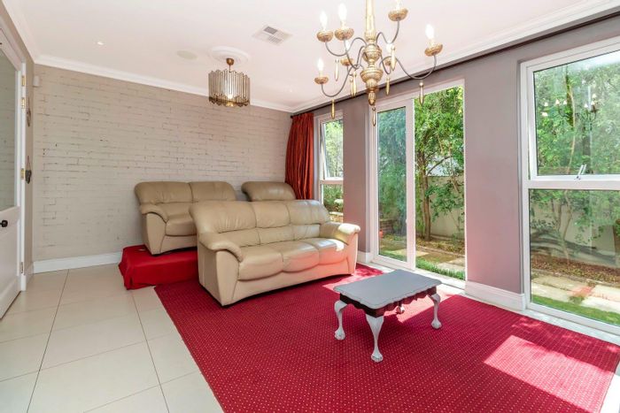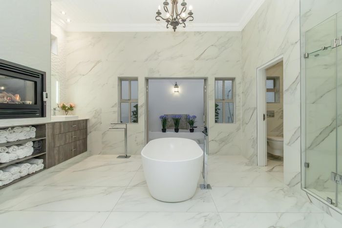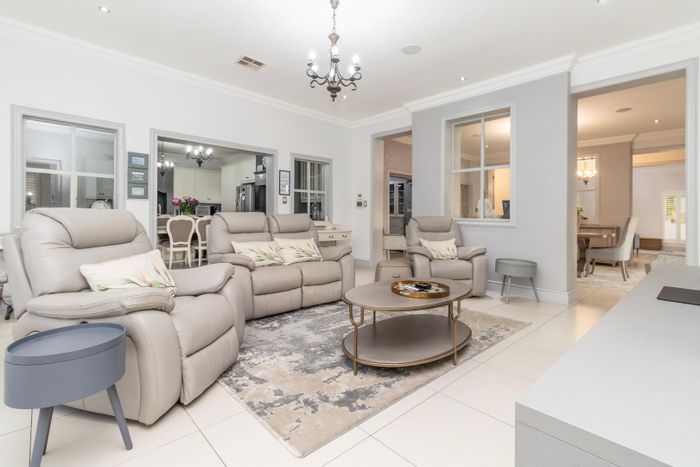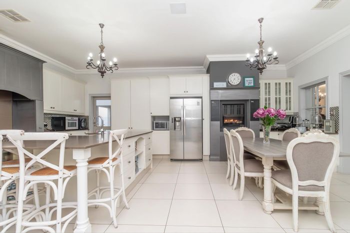 Classic family residence in Waterfall Country Estate with double-volume entrance, pool and gazebo with built-in braai — elegant master suite, sunny study, four-car garage; 4 beds, 3 baths.