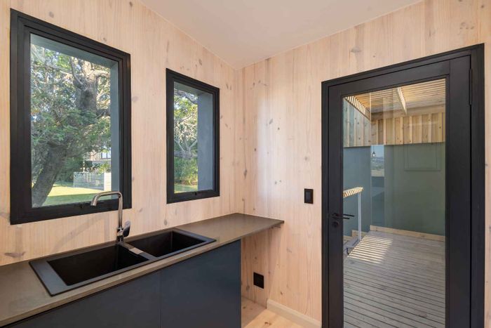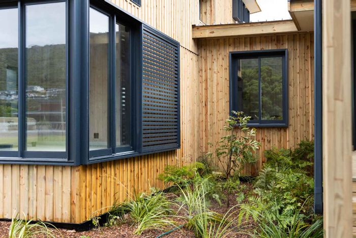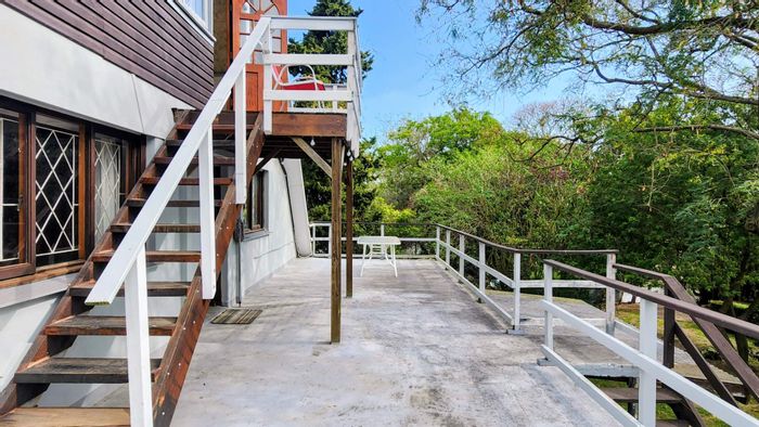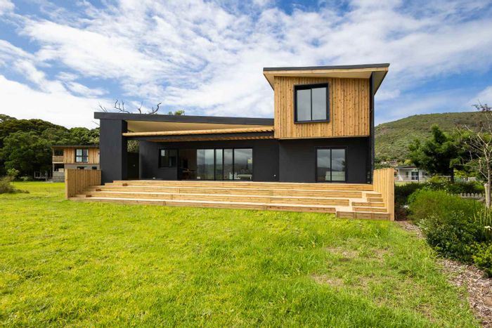 Flexible multigenerational living in a three-story A-frame set in a peaceful leafy neighbourhood, with a large established garden, sunny veranda, and five bedrooms, four bathrooms, tandem garage fitting four cars.