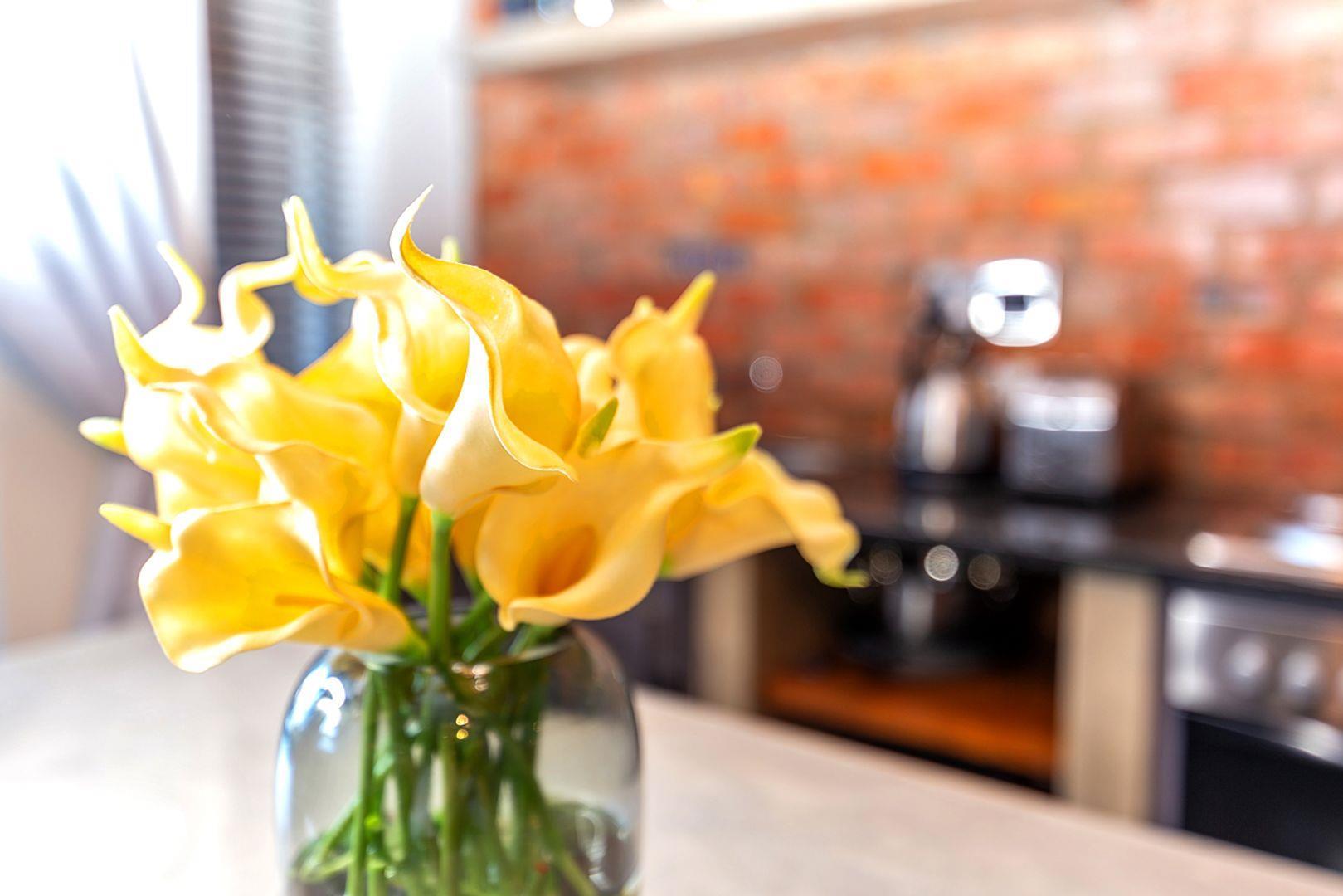 The ground floor apartment has 2 bedrooms with en-suite bathrooms. The apartment is fully equipped that makes your stay more comfortable. The open plan modern kitchen has a microwave, stove, oven, refrigerator with freezer, cutlery, glasses, pots, pans, kettle, toaster, iron and ironing board. The kitchen has a centre island for additional countertop space that can be used for prepping and staging meals.