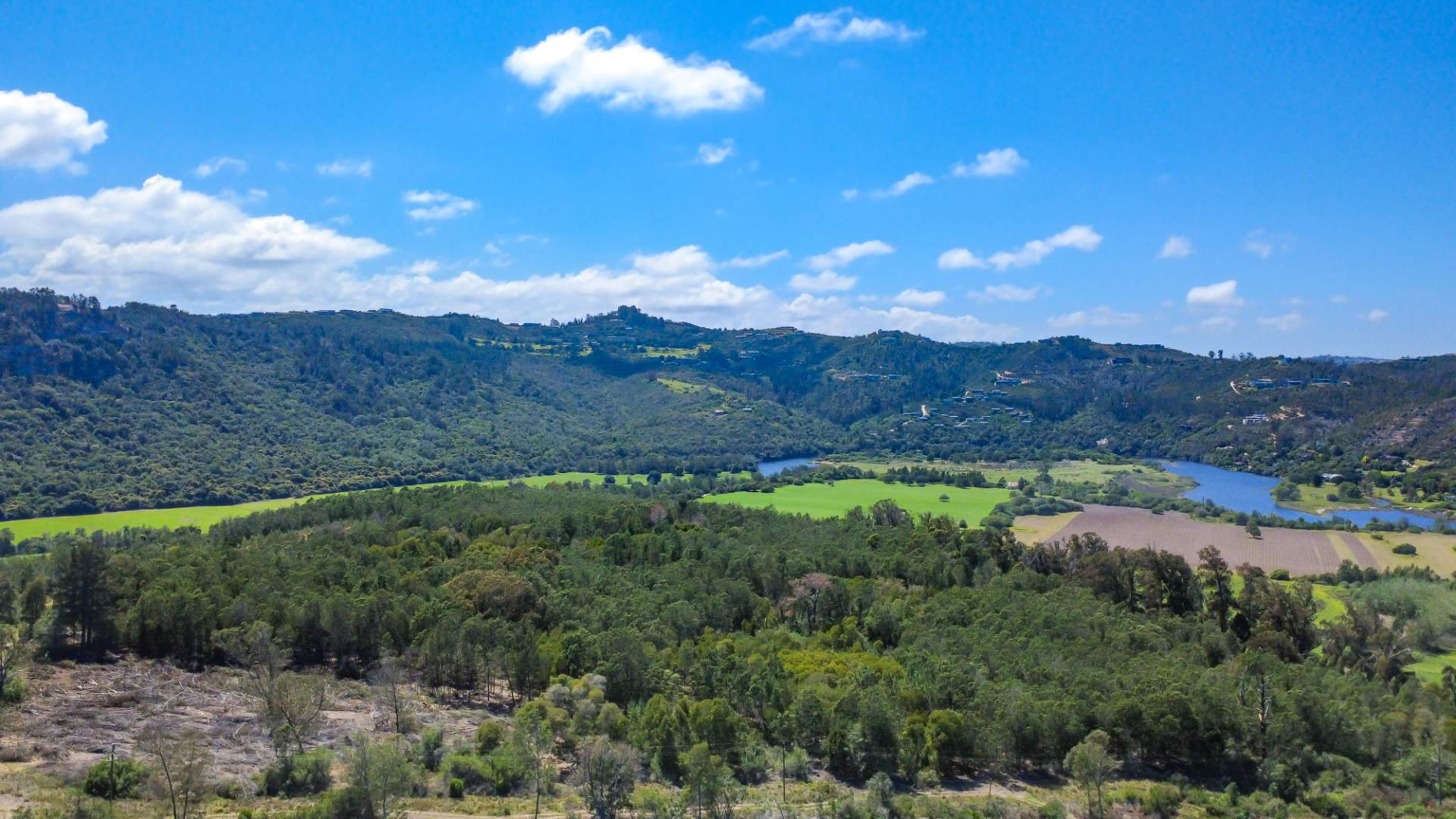 From its elevated sections, the land enjoys sweeping views toward the Knysna Heads, the upper reaches of the Knysna River and the Outeniqua Mountains. The property also includes approximately 400 metres of frontage along the Knysna River, adding both scenic appeal and valuable natural character.