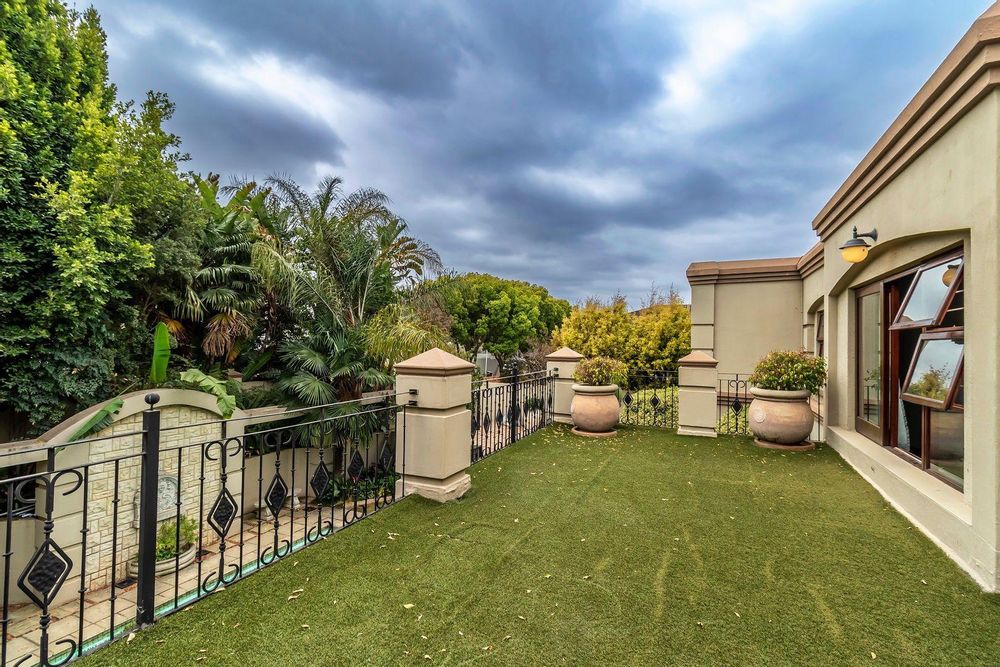 A double-volume private entrance sets the tone for this elegant home, leading into a relaxed TV lounge with tranquil garden views. The expansive open-plan kitchen seamlessly connects to the dining area, which opens out to the garden—ideal for effortless indoor-outdoor living. A separate formal lounge provides a peaceful retreat and can easily function as a kids’ playroom. The home also includes a dedicated study for work or homework sessions, and a custom-built bar that flows into an enclosed entertainer’s patio with a built-in braai, creating a stylish and functional space for year-round entertaining.