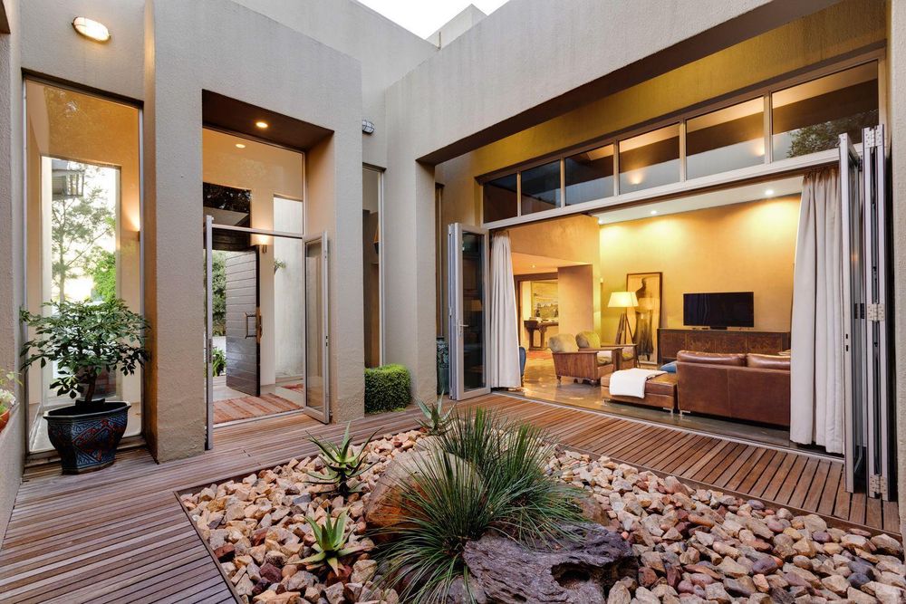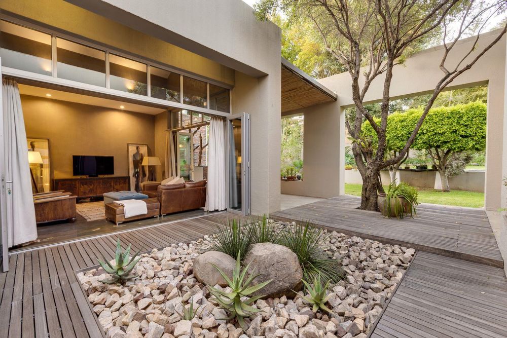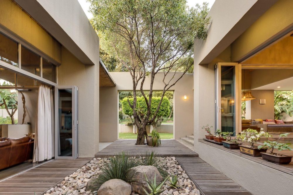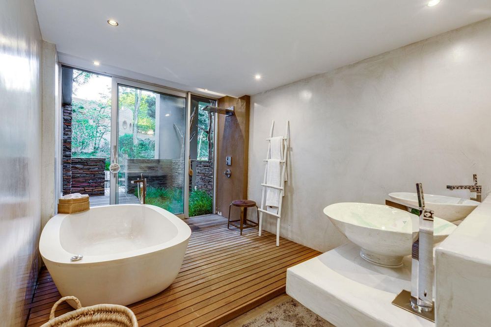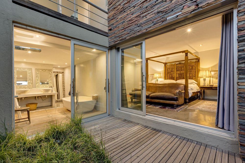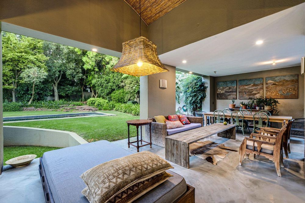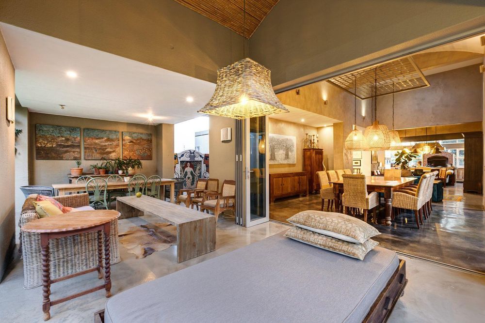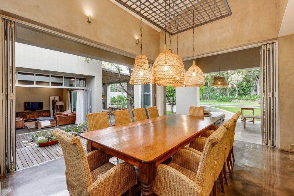 The use of vast glass windows and bifold doors invites the glorious African summers into this entire space.