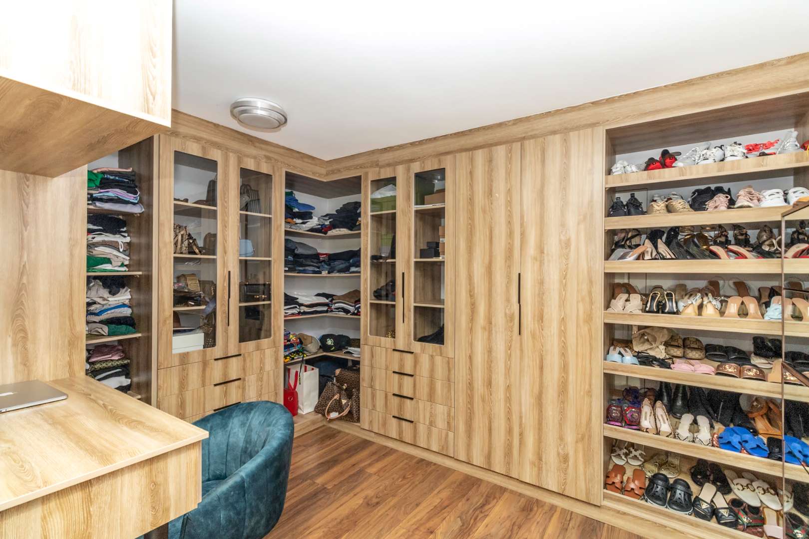 A gorgeous entrance welcomes you into the home and leads to a sizeable kitchen with breakfast nook and open plan dining room. One en-suite guest bedroom opens to a private lounge. A large bright lounge, TV room and guest cloak complete this floor. The stylish wooden staircase leads a second main bedroom complimented by a dressing room and en-suite bathroom. A further two bedrooms share a dual bathroom. The study provides a perfect work from home space which is surrounded by glass and overlooks the double volume entrance.