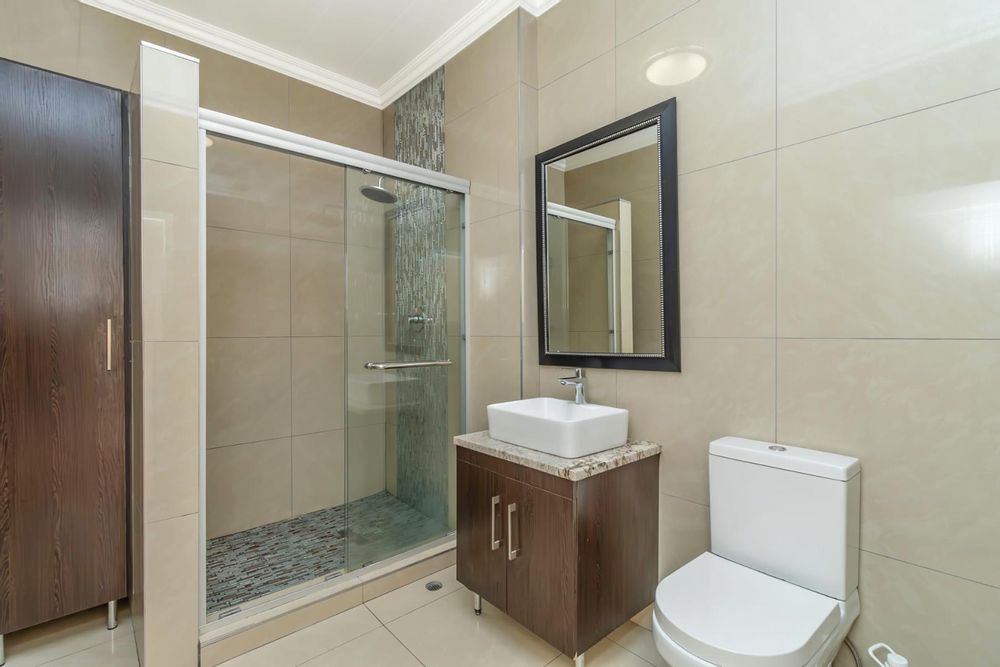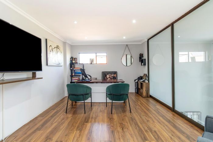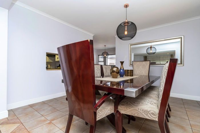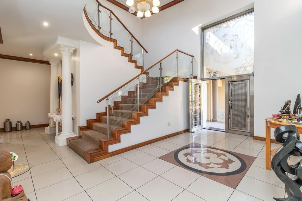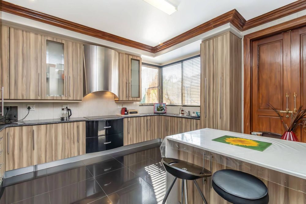 The formal lounge and dining room are separated by sliding doors and serviced by the separate kitchen including a chefs 2nd kitchen and scullery. The guest cloak room and guest bedroom are privately positioned on the east wing of the ground floor. At the rear of the house is a first floor separate annexure flatlet which is newly renovated with a modern day design and includes an open plan lounge dining and kitchen as well as three bedrooms and a full bathroom.