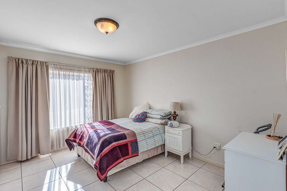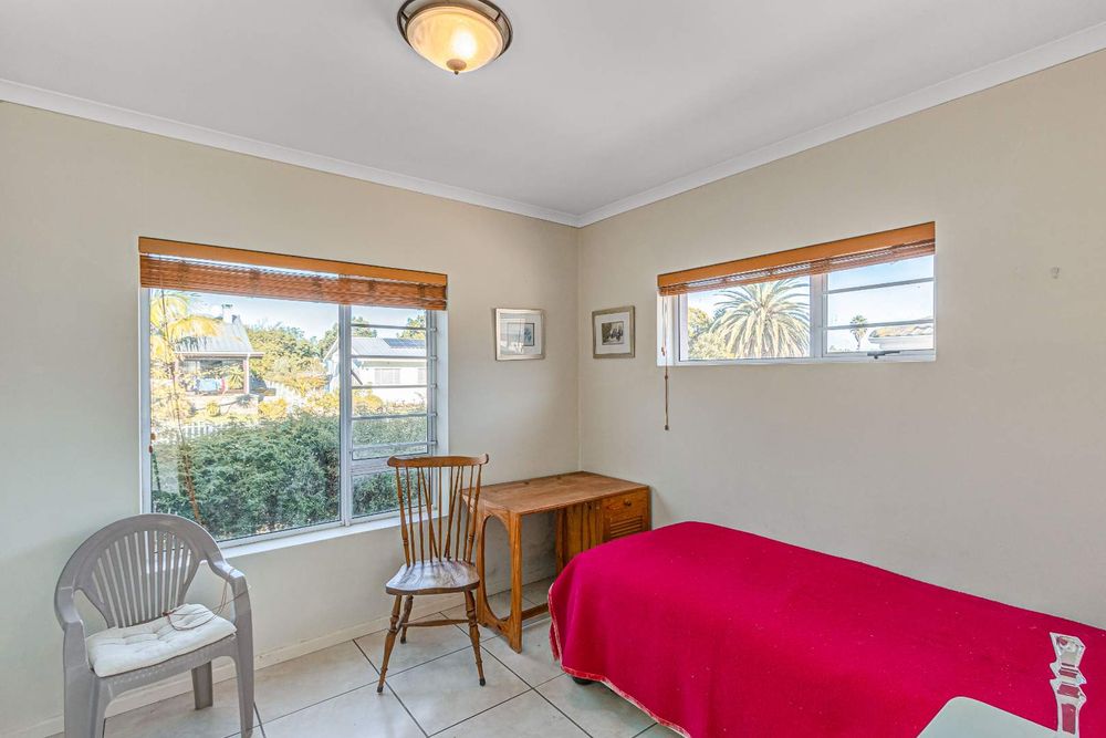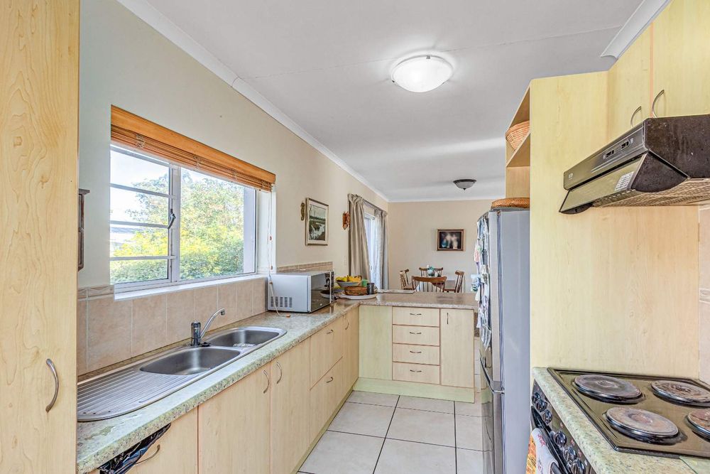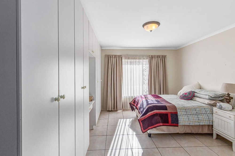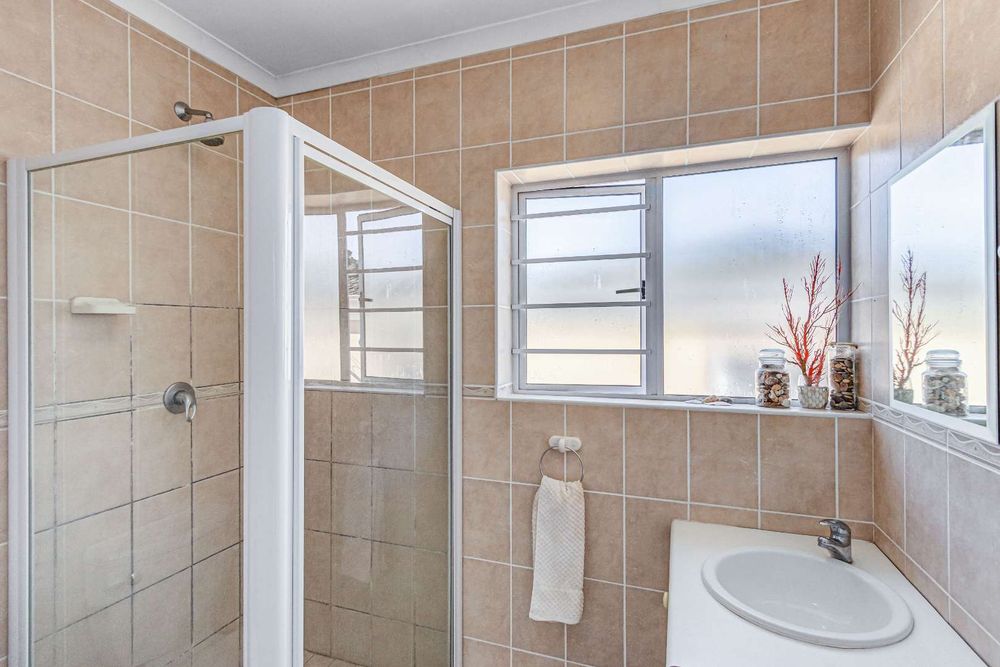The main bedroom is en-suite and to the left while the other two guest rooms are off to the right with a shared bathroom. Ample cupboard and storage space is found throughout. There are louvre blinds on two-bedroom windows and curtain rails in place.