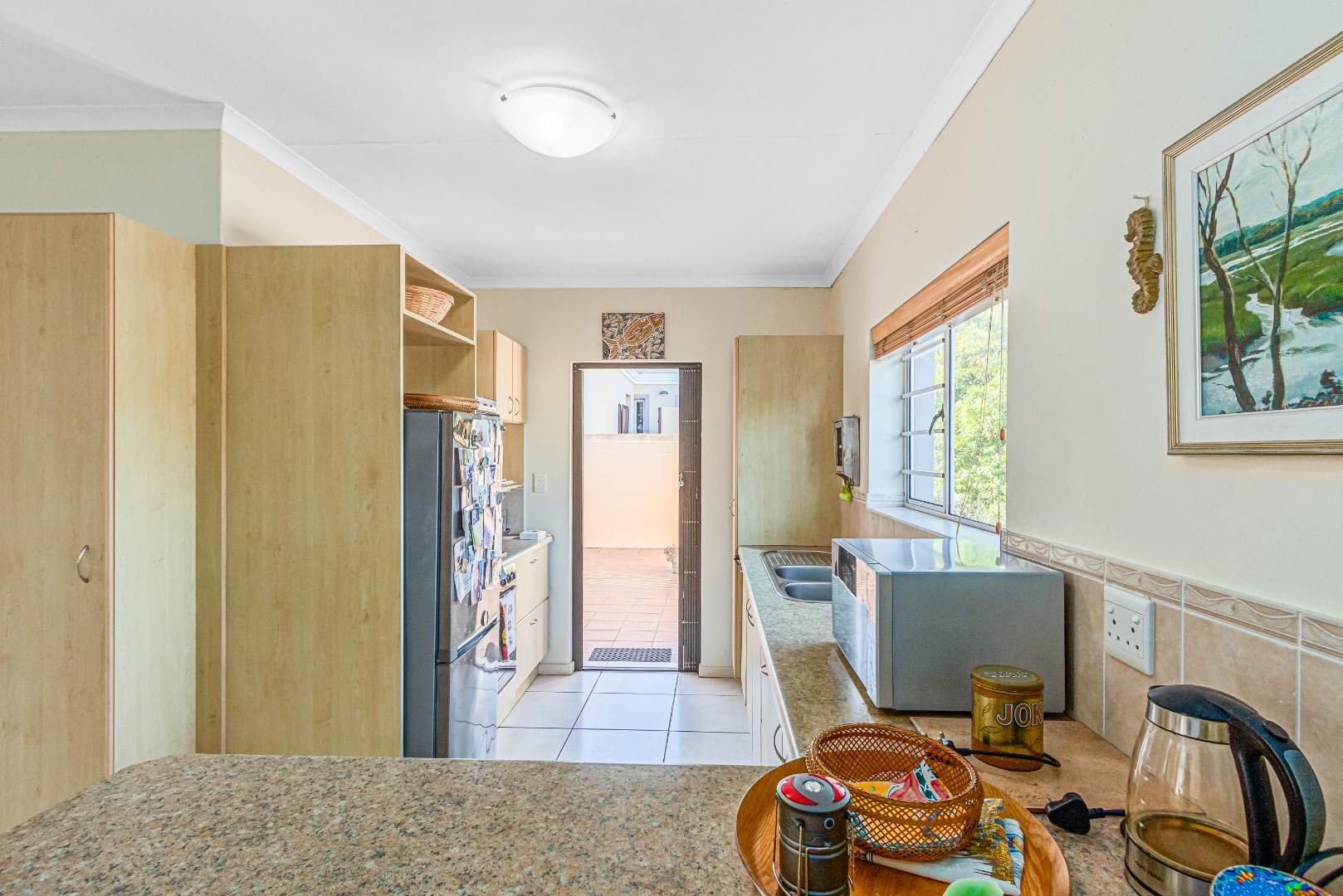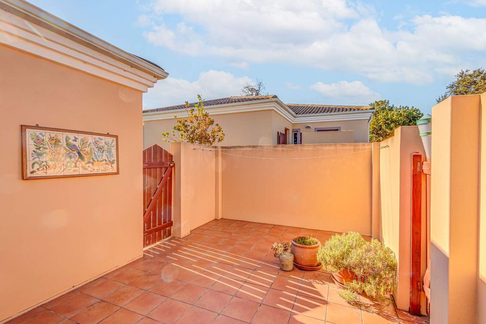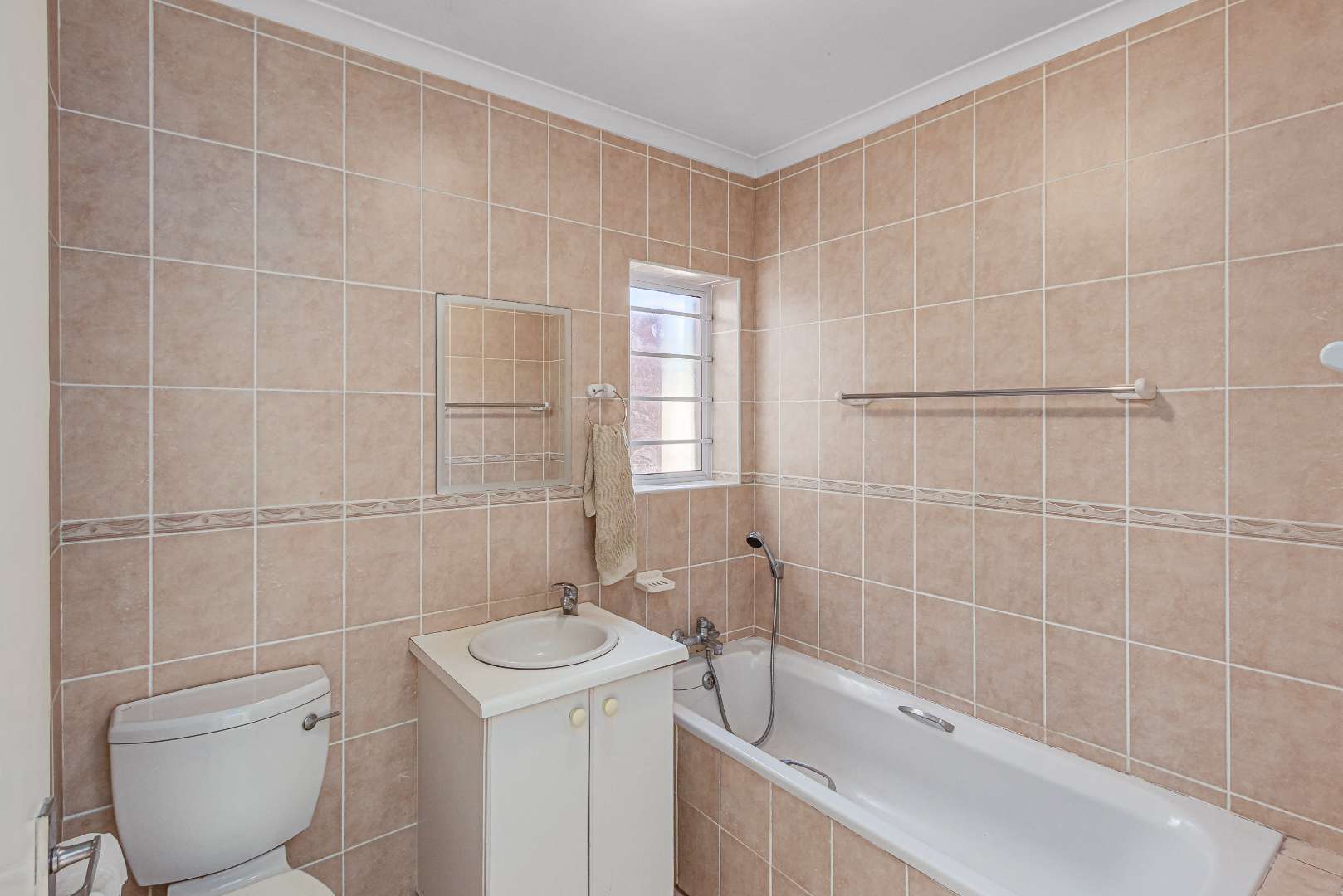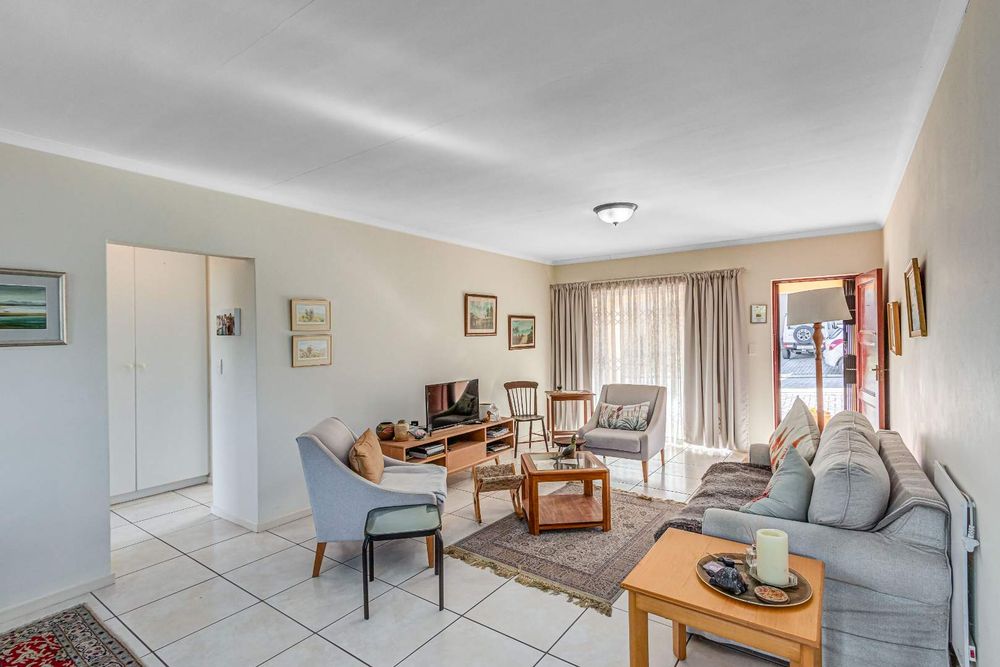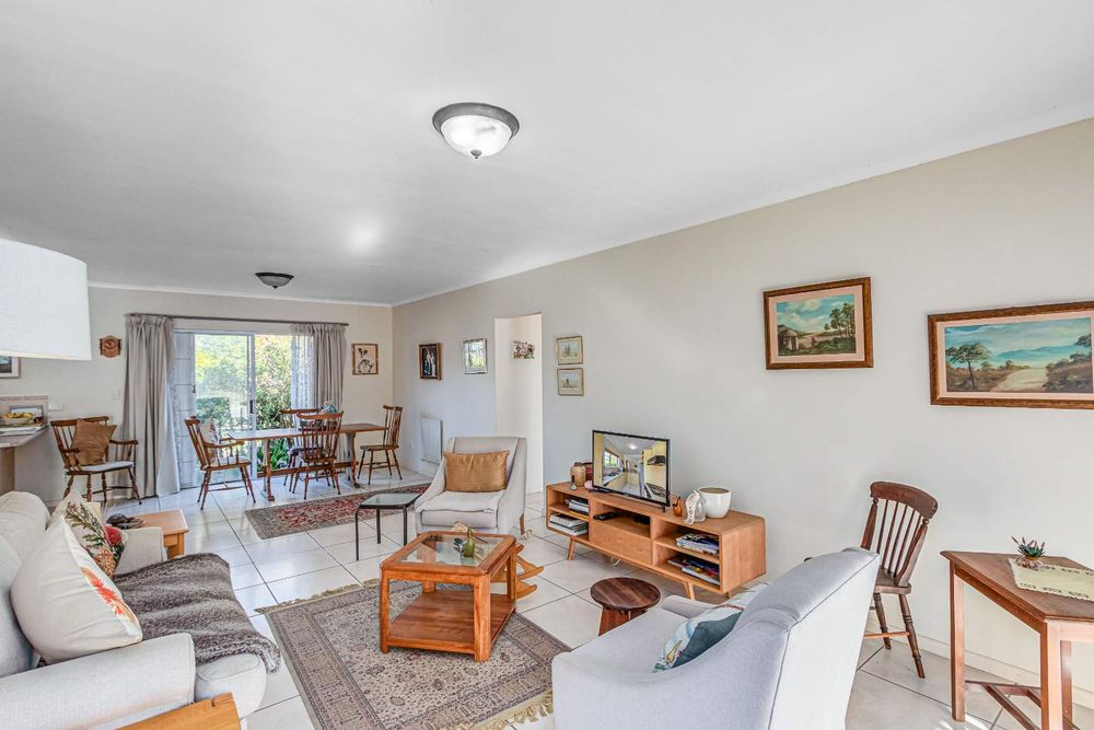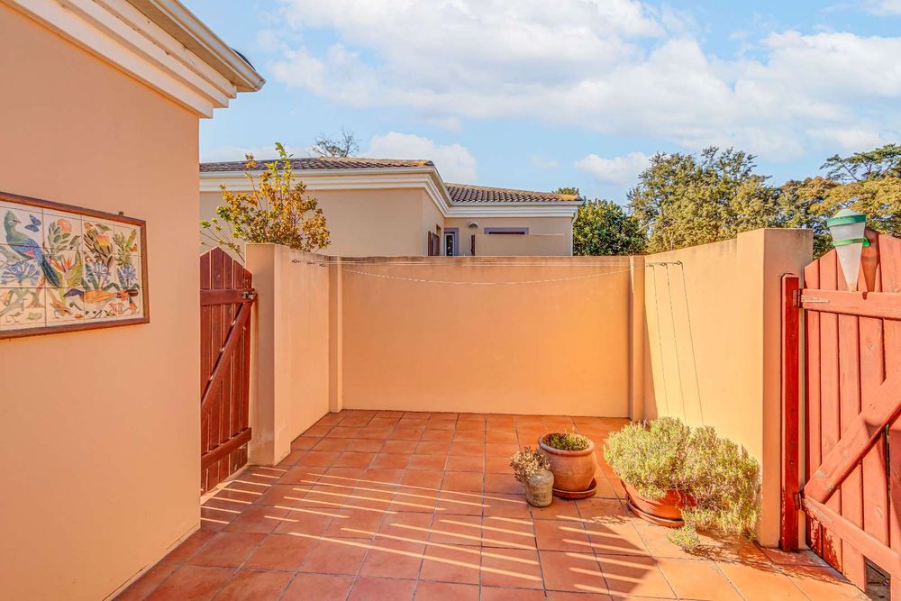 The garden runs along the front of the house and there is a large, sunny courtyard which is enclosed. This leads to the garage and back into the kitchen area. There is a carport and ample paved are for more parking. The complex is small and well run with reasonable levies.