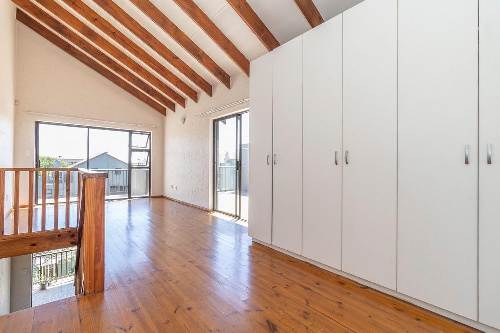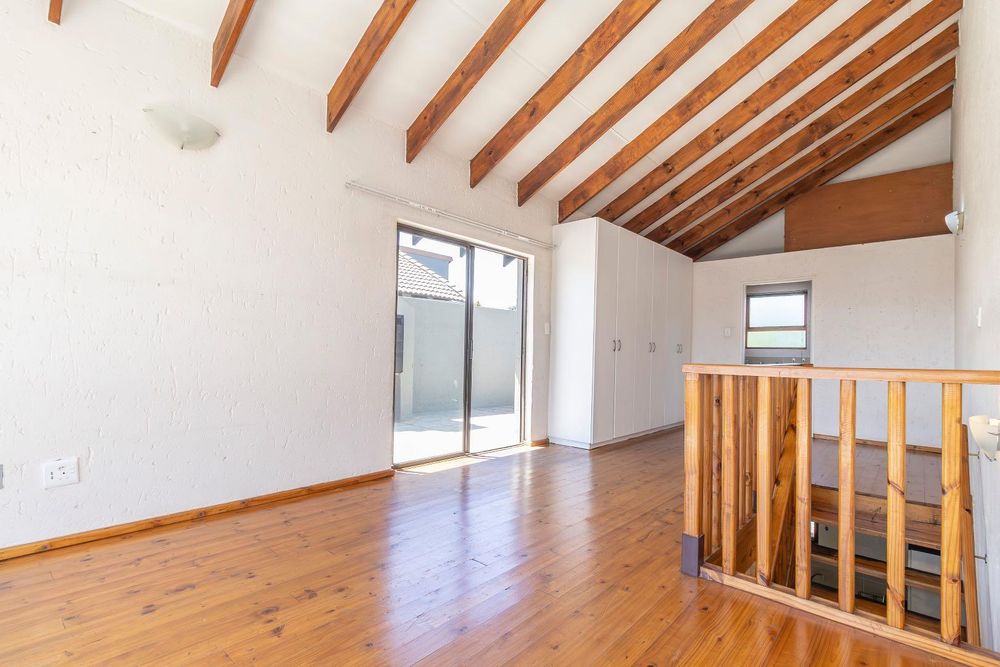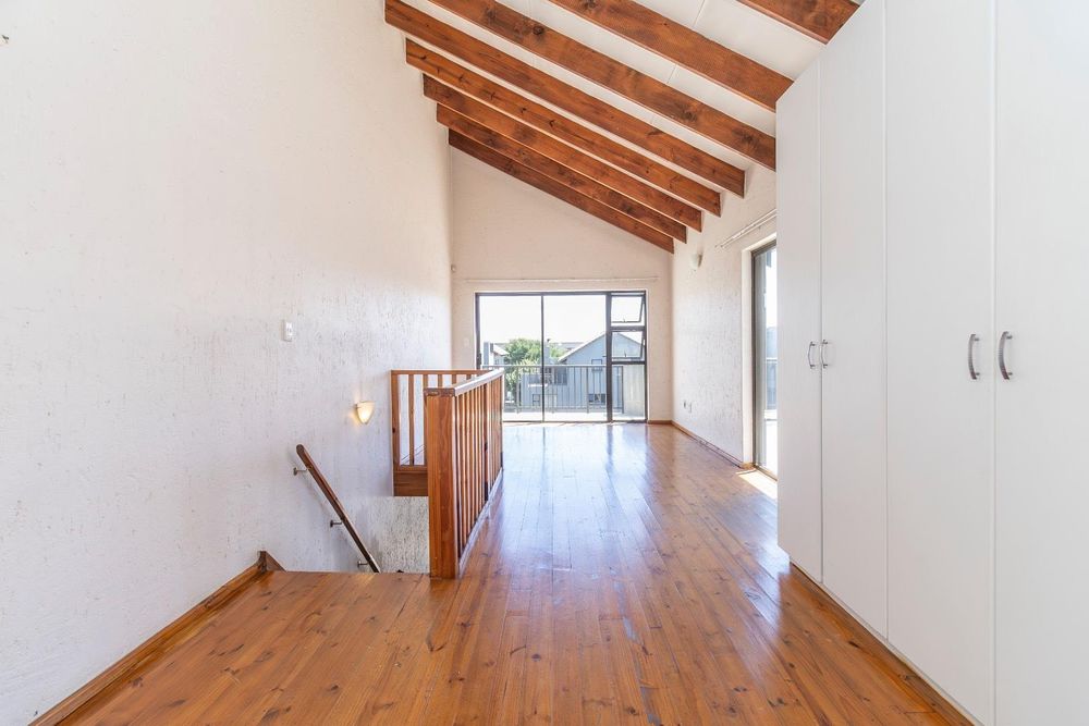 Upstairs, a spacious sunny bedroom/ teenage pad with en -suite bathroom, as well as a spacious balcony for entertainment with a built-in Braai.