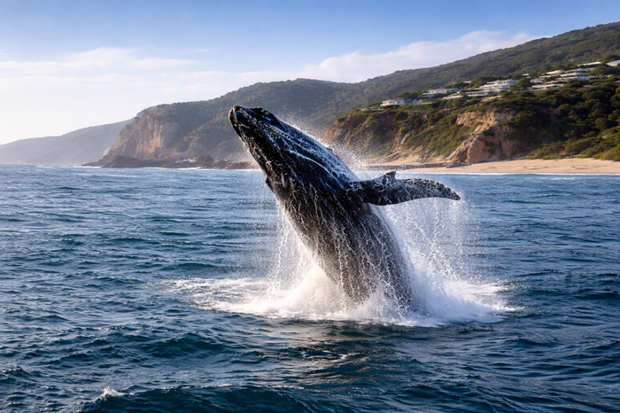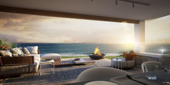 Wake to oceanfront living in Brenton-on-Sea, Knysna — 80m direct Indian Ocean frontage with six ocean-facing cottages, approved clubhouse and infinity-pool plans, framed by coastal fynbos and whales.