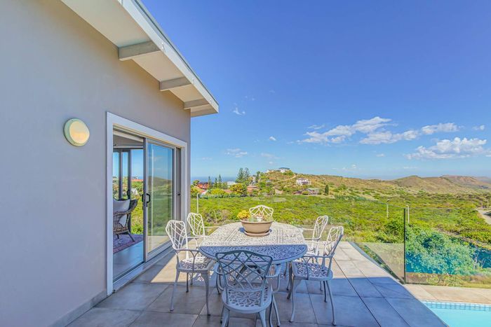 Coastal living in Brenton-on-Sea within the Goukamma Conservancy, enjoy fynbos and ocean-sunset views from a patio with built-in braai and pool. Three en suite bedrooms, double garage.