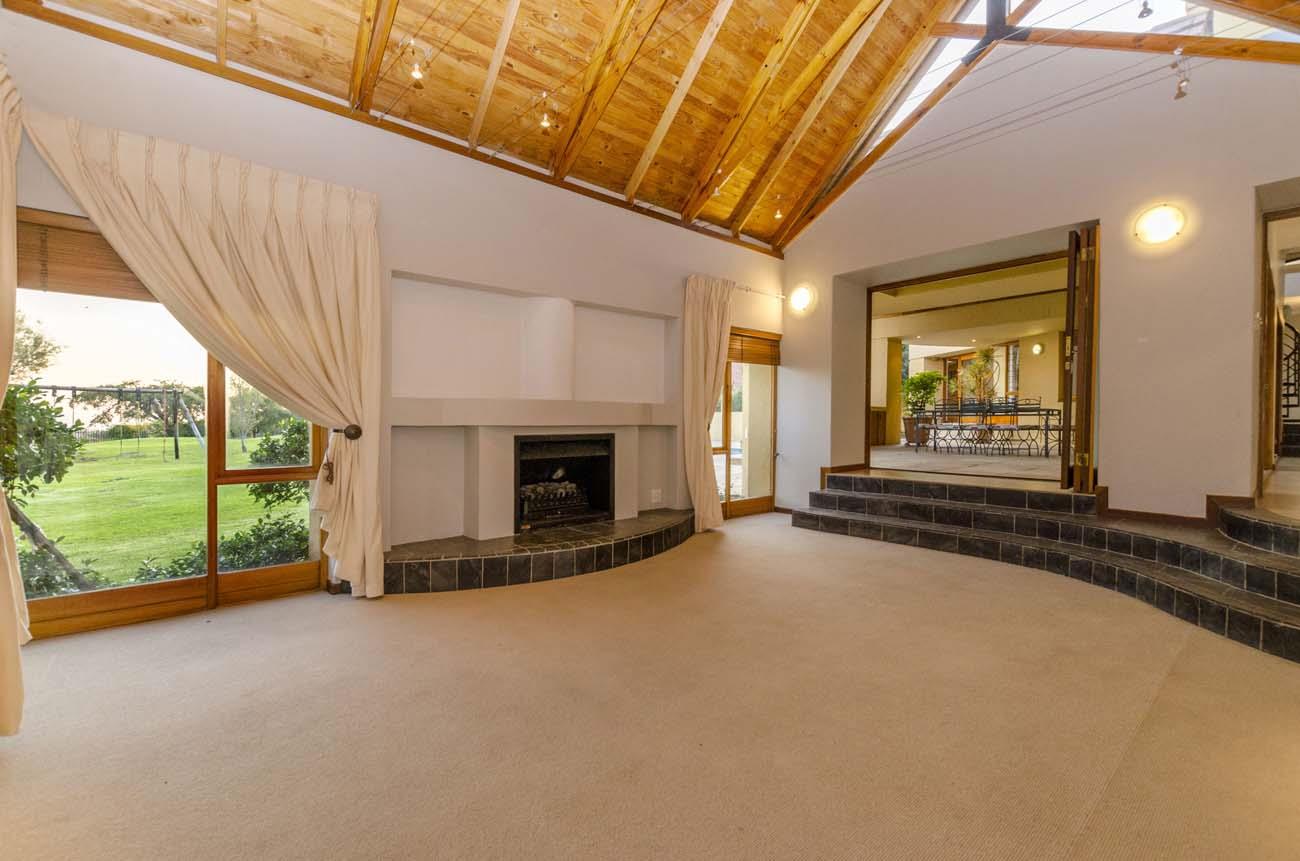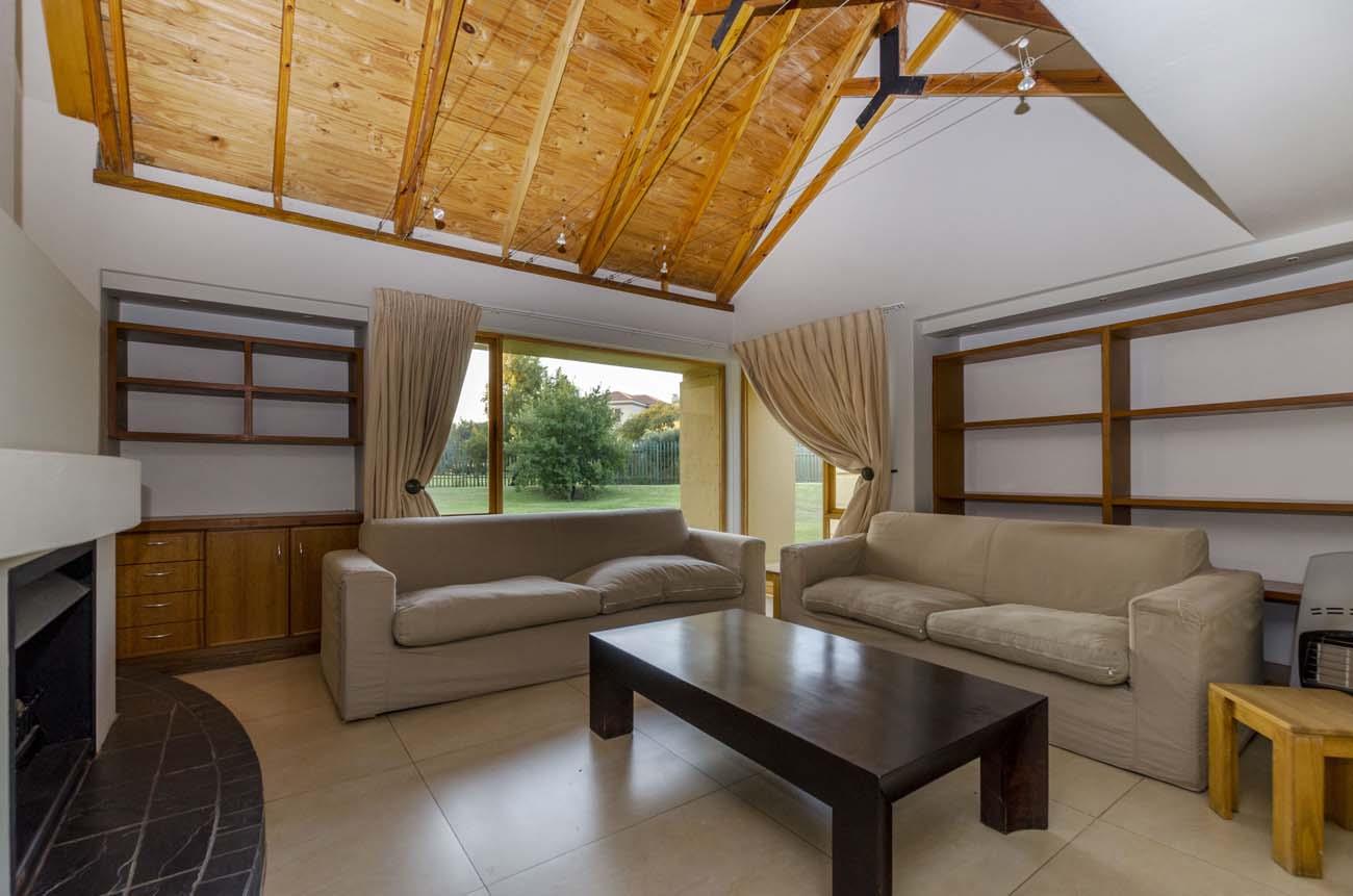 A comfortable family home, the main residence is constructed over a single floor with split-levels. Attractive architectural features of peaked solid wood exposed trusses with window inserts, create a lovely feeling of height and filtered light.