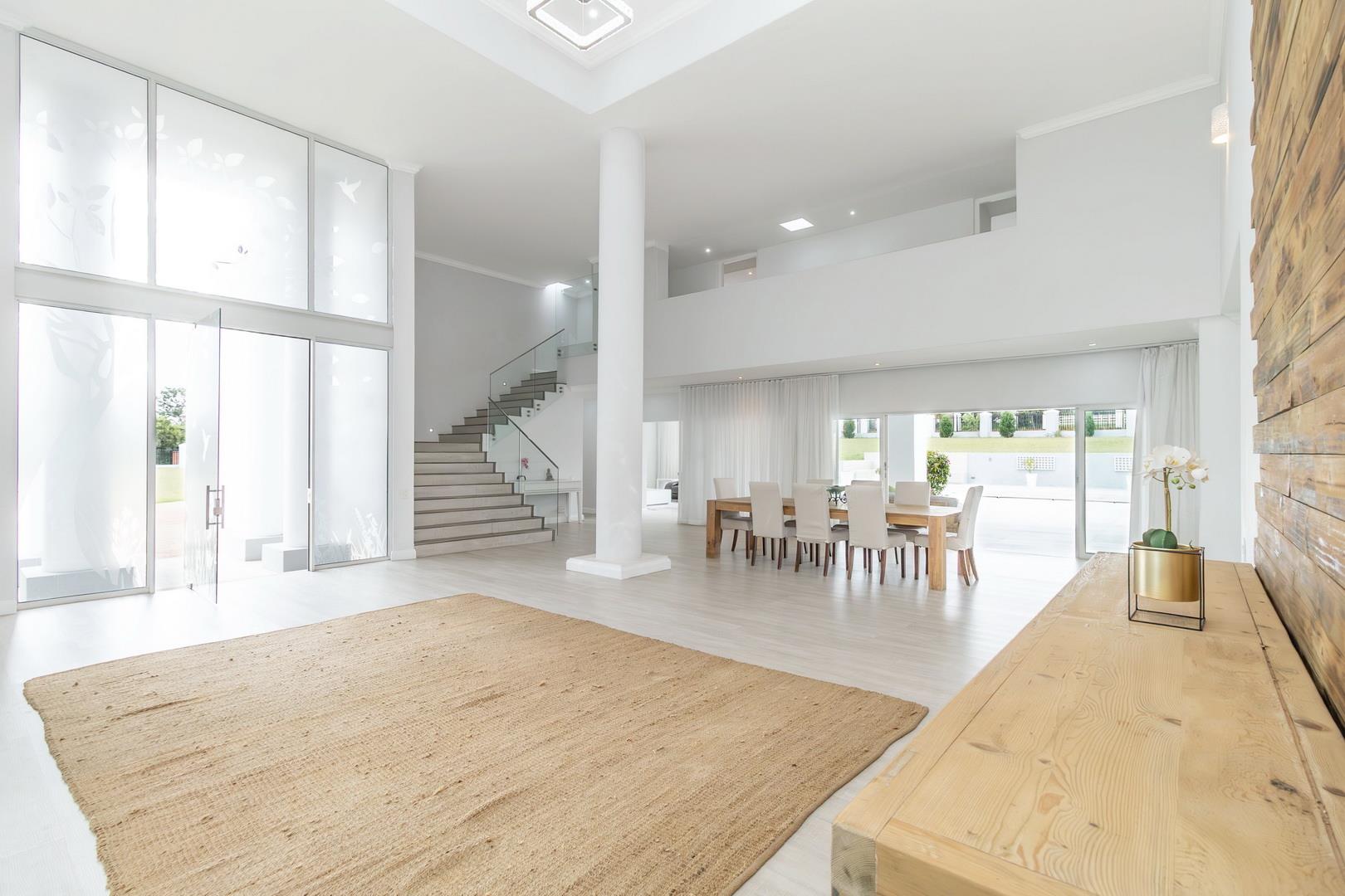 Double-volume entrance hall sets the tone for the principal floor, with its Open-plan dining room and kitchen with separate scullery for added convenience, TV lounge with fireplace for cozy nights in, study with own courtyard, perfect for a peaceful workspace, Formal lounge with wood fireplace, ideal for special occasions, sliders to large covered patio, overlooking the Boma and pool area.