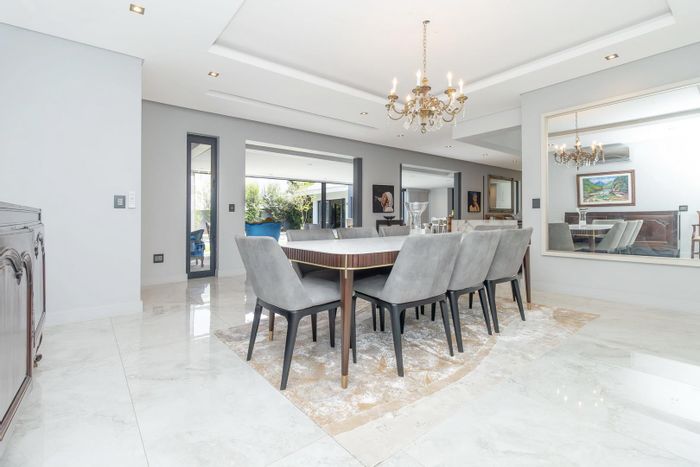 Corner stand with covered patio, perfect for alfresco dining , pool, built-in braai and boma for summer fun, Staff accommodation for added convenience, and four automated garages complete this home.