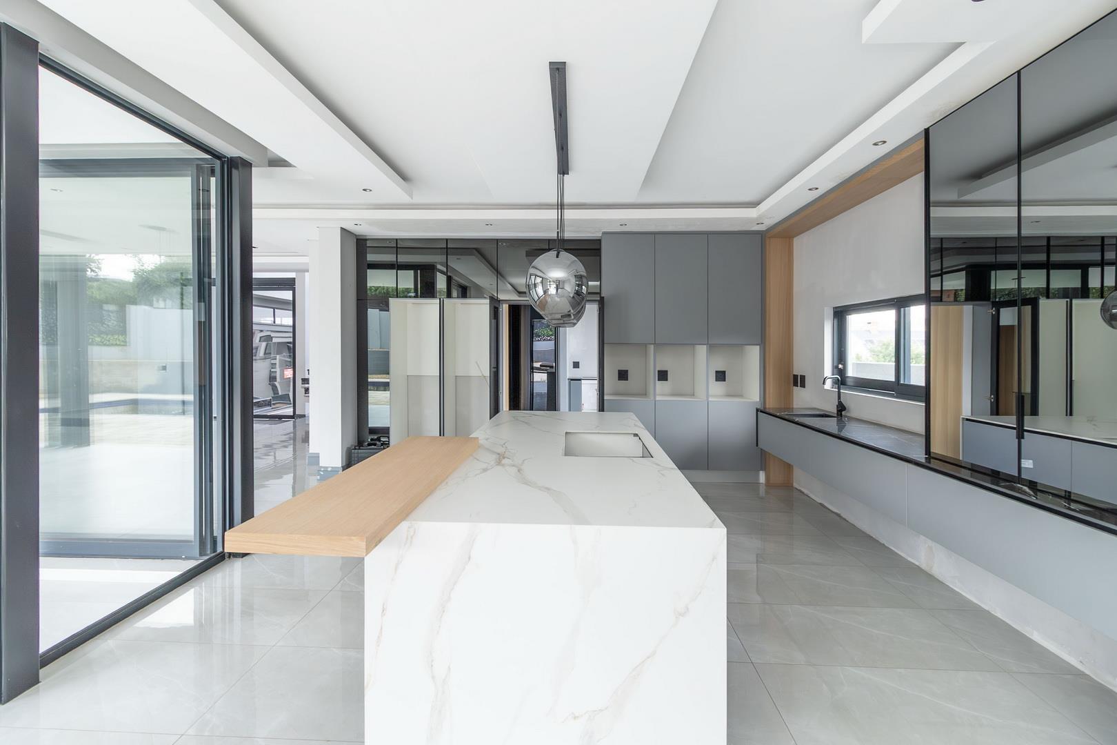 Double-volume entrance hall sets the tone for elegance, Open-plan formal lounge and dining room share a cozy gas fireplace, stunning two-tone kitchen with natural wood finishes, walk-in pantry, scullery, and a second chef's kitchen. Additional Living Spaces is a Separate informal lounge for relaxed gatherings and a Privately situated guest bedroom for visiting loved ones.