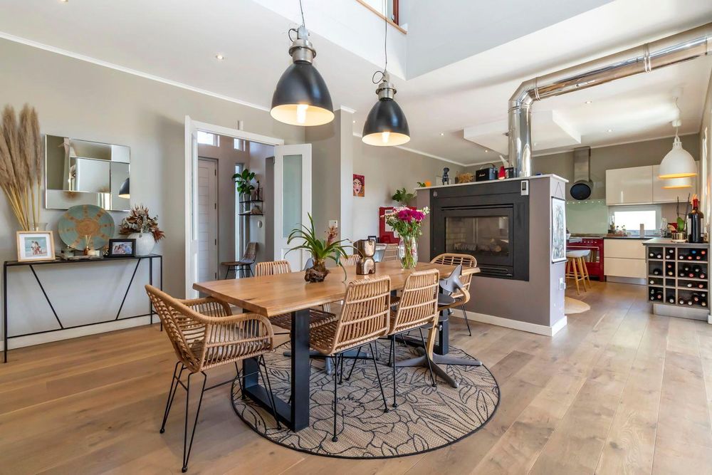 A truly exceptional home designed for elegant living with glorious living spaces. The double volume entrance creates an awe-inspiring welcome into the home. The Eye-catching design feature fireplace adds to the elegant charm. The free flowing ground floor spaces allow for privacy or slide open all the large glass sliding doors to expose the entire ground floor into an abundance of space allowing for exceptional entertaining.