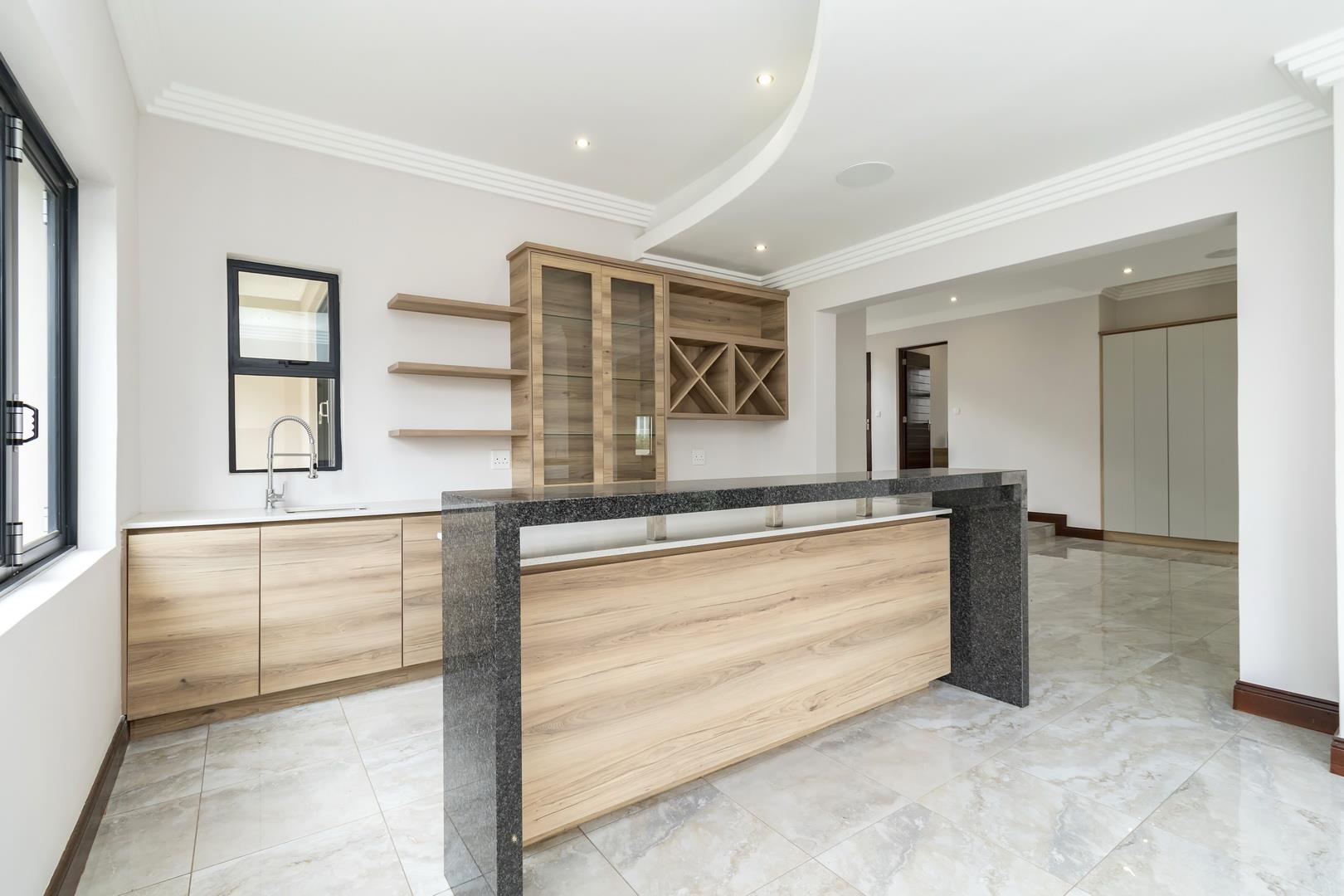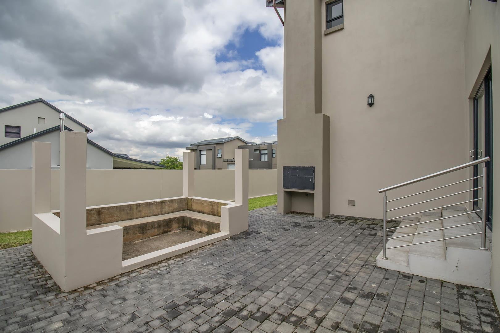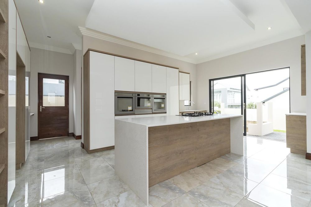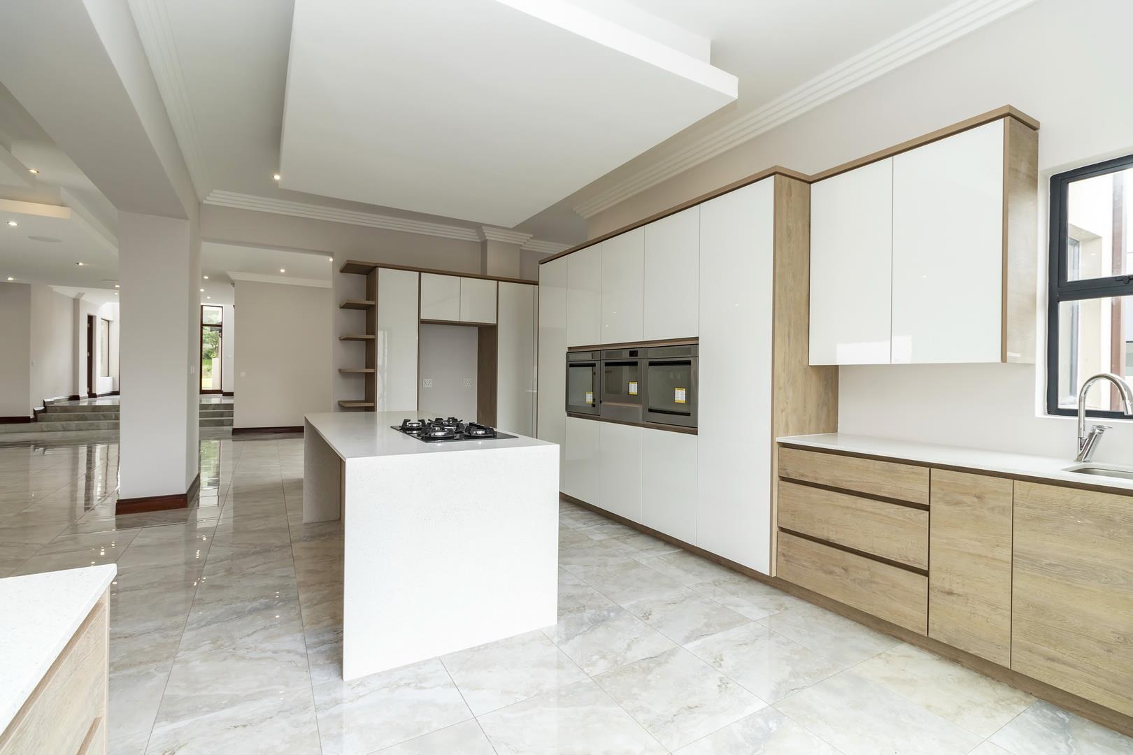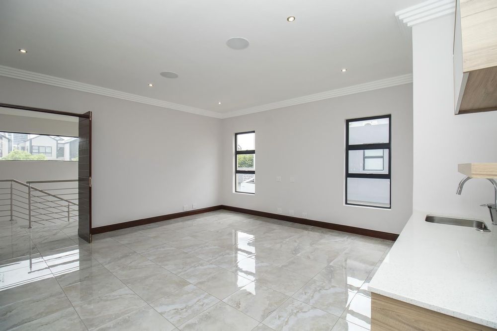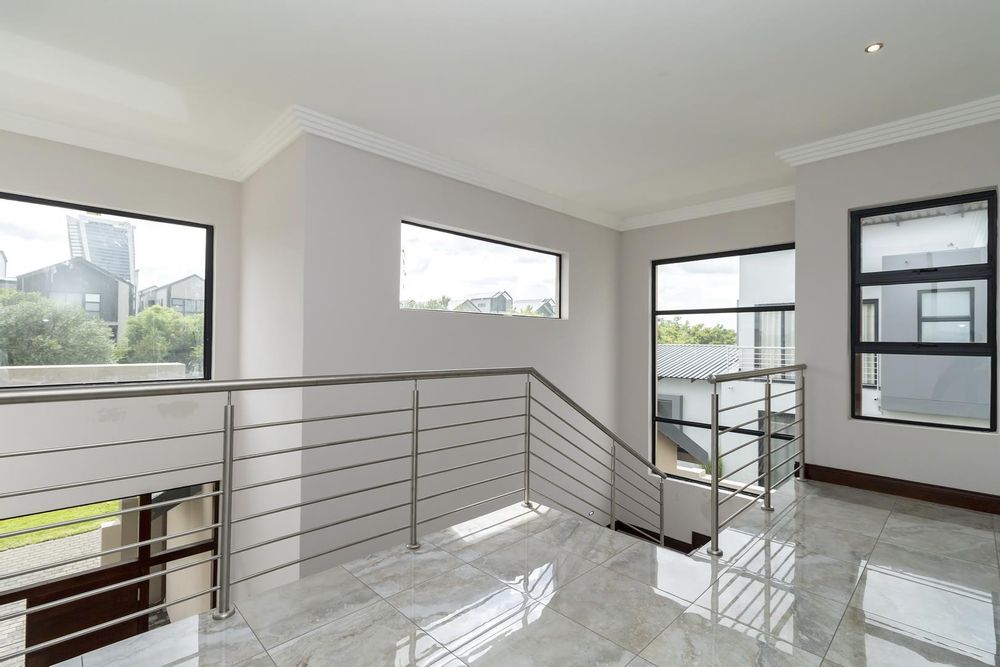 The principal floor, open plan living area allows for glamorous formal entertaining or a relaxed luxurious informal setting. The gourmet kitchen, complete with integrated appliances, is an integral feature as well as the open plan formal lounge and dining room with own gas fireplace. This area is further enhanced when the tall stacker doors are opened onto the garden, swimming pool, boma, covered patio and built in braais. The remaining living spaces include a guest cloak room and an en-suite guest bedroom, a study and a built-in bar.