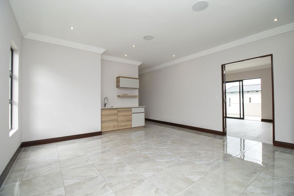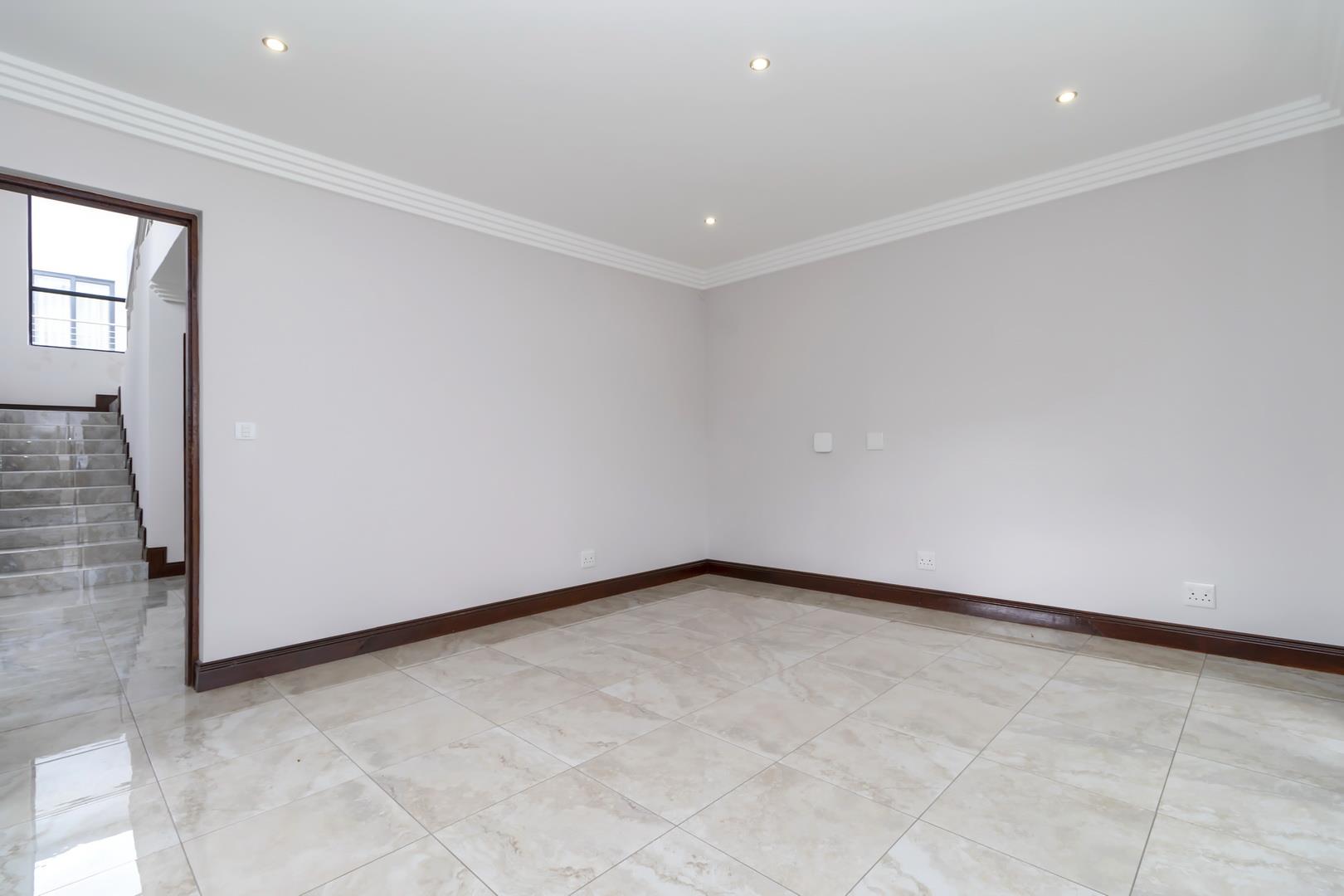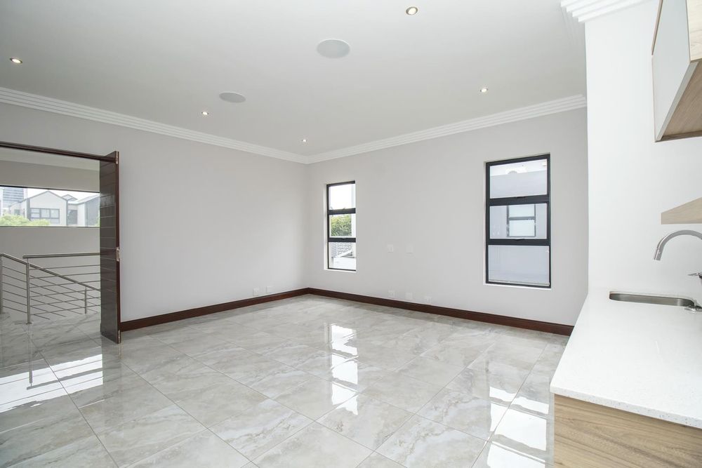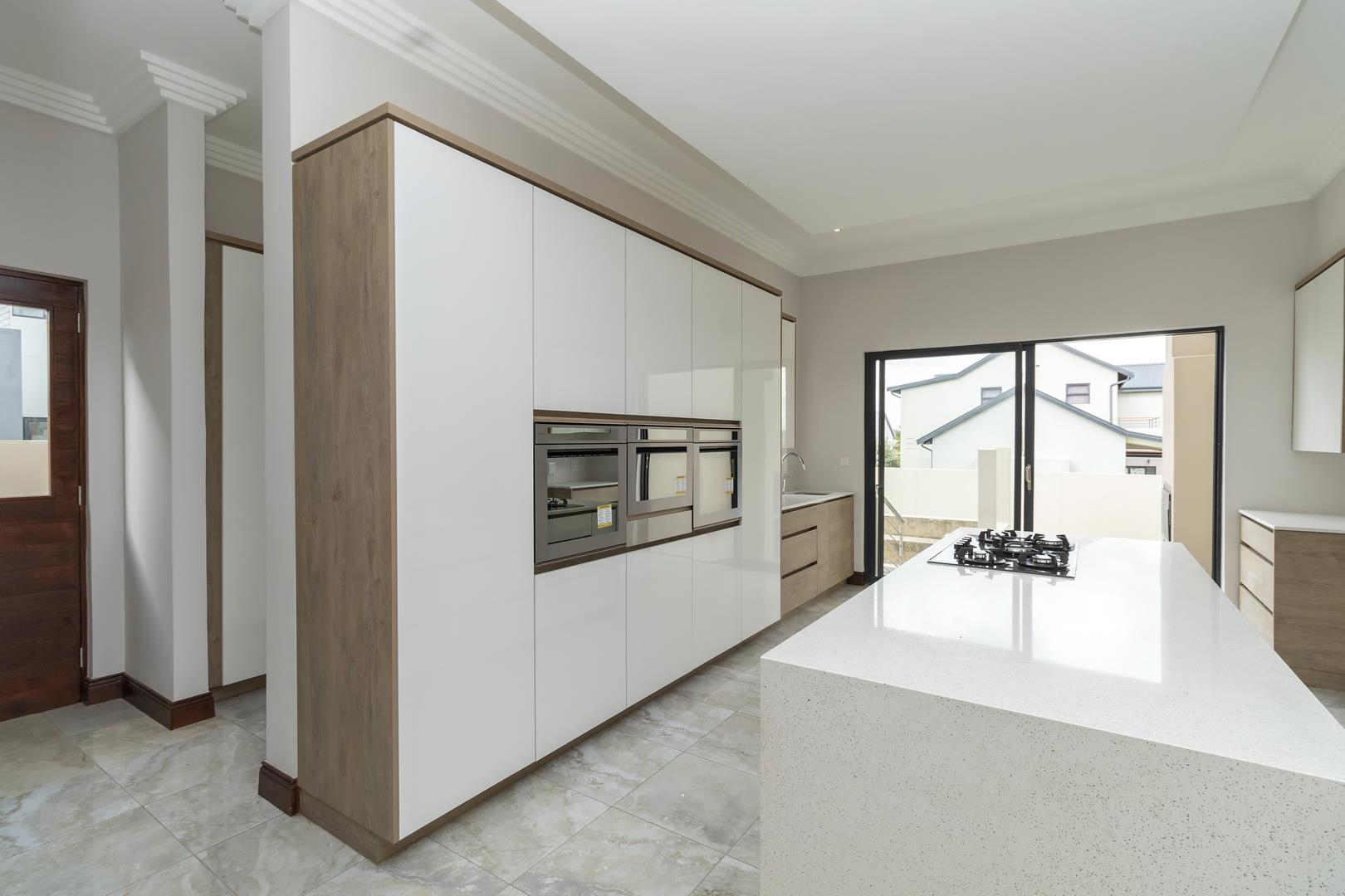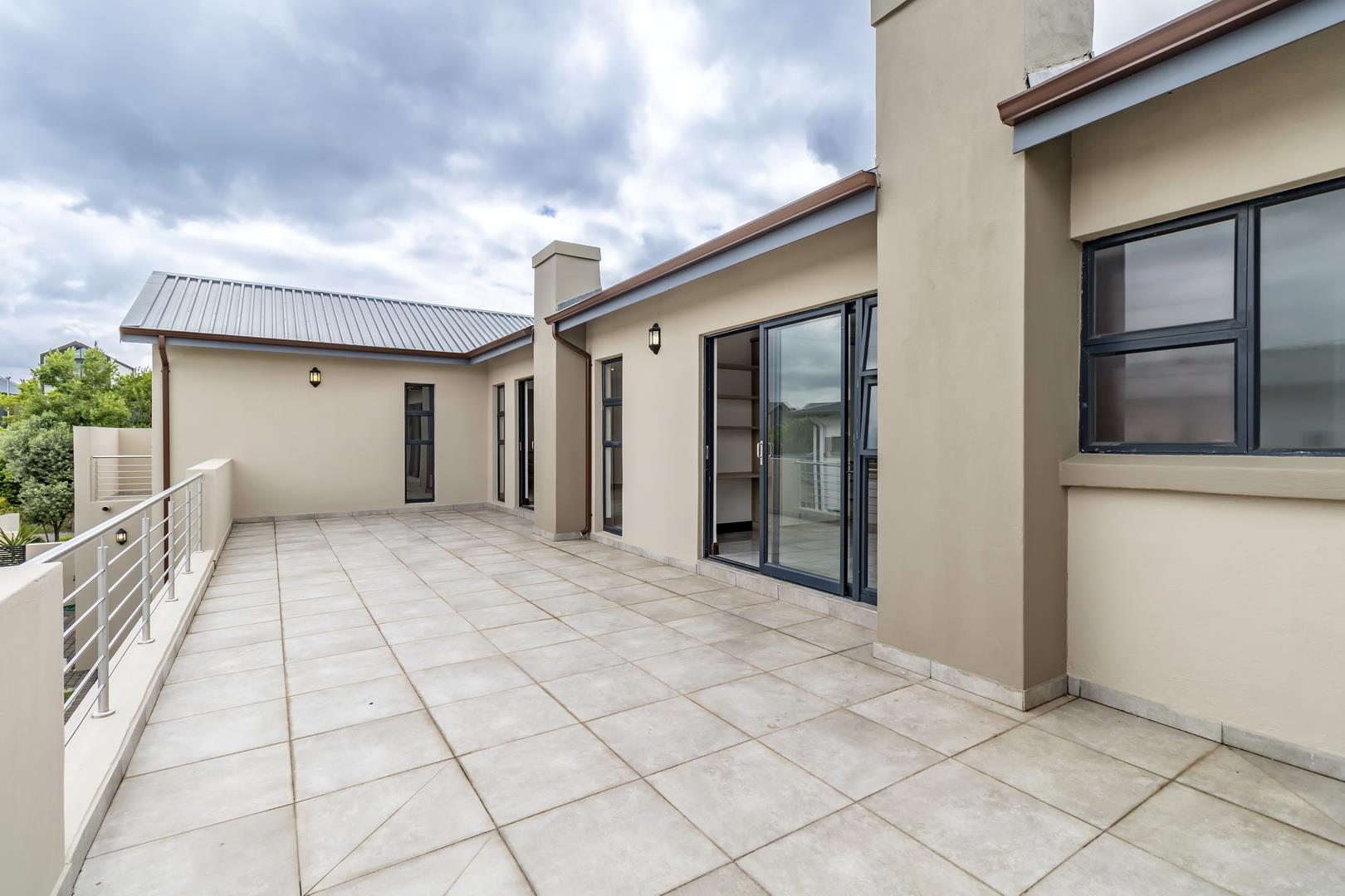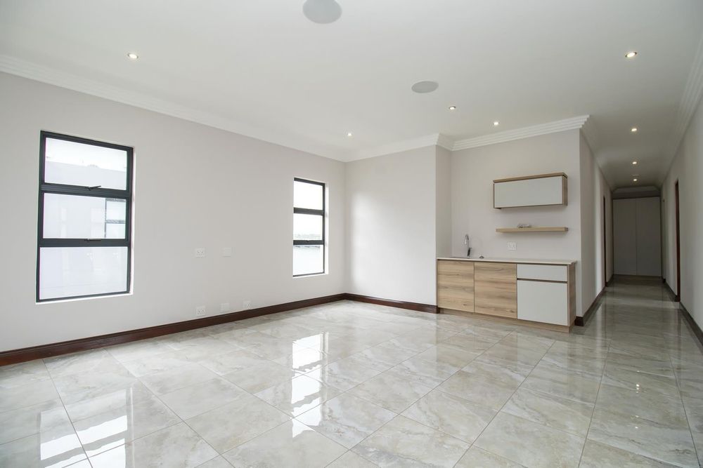 The principal floor, open plan living area allows for glamorous formal entertaining or a relaxed luxurious informal setting. The gourmet kitchen, complete with integrated appliances, is an integral feature as well as the open plan formal lounge and dining room with own gas fireplace. This area is further enhanced when the tall stacker doors are opened onto the garden, swimming pool, boma, covered patio and built in braais. The remaining living spaces include a guest cloak room and an en-suite guest bedroom, a study and a built-in bar.