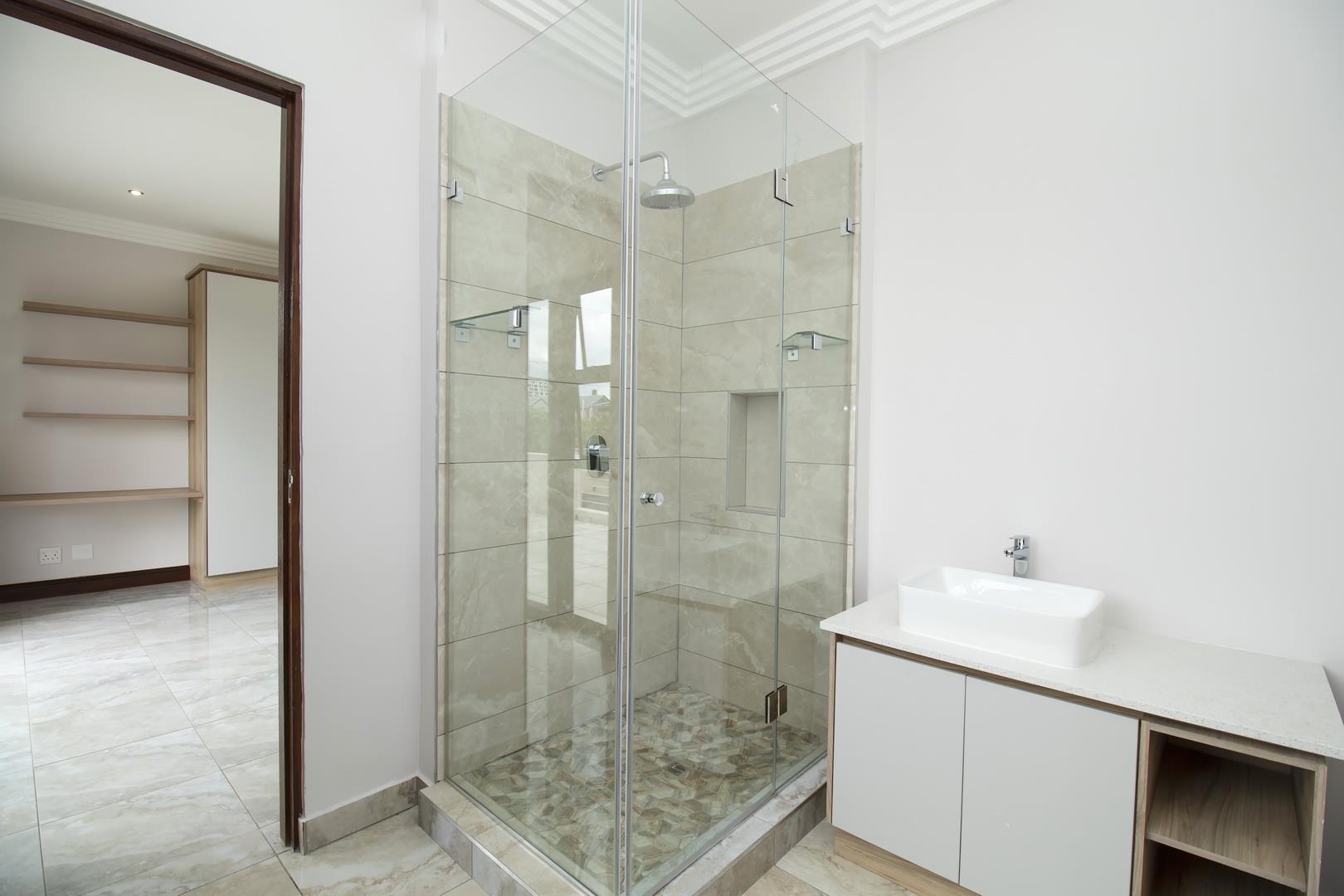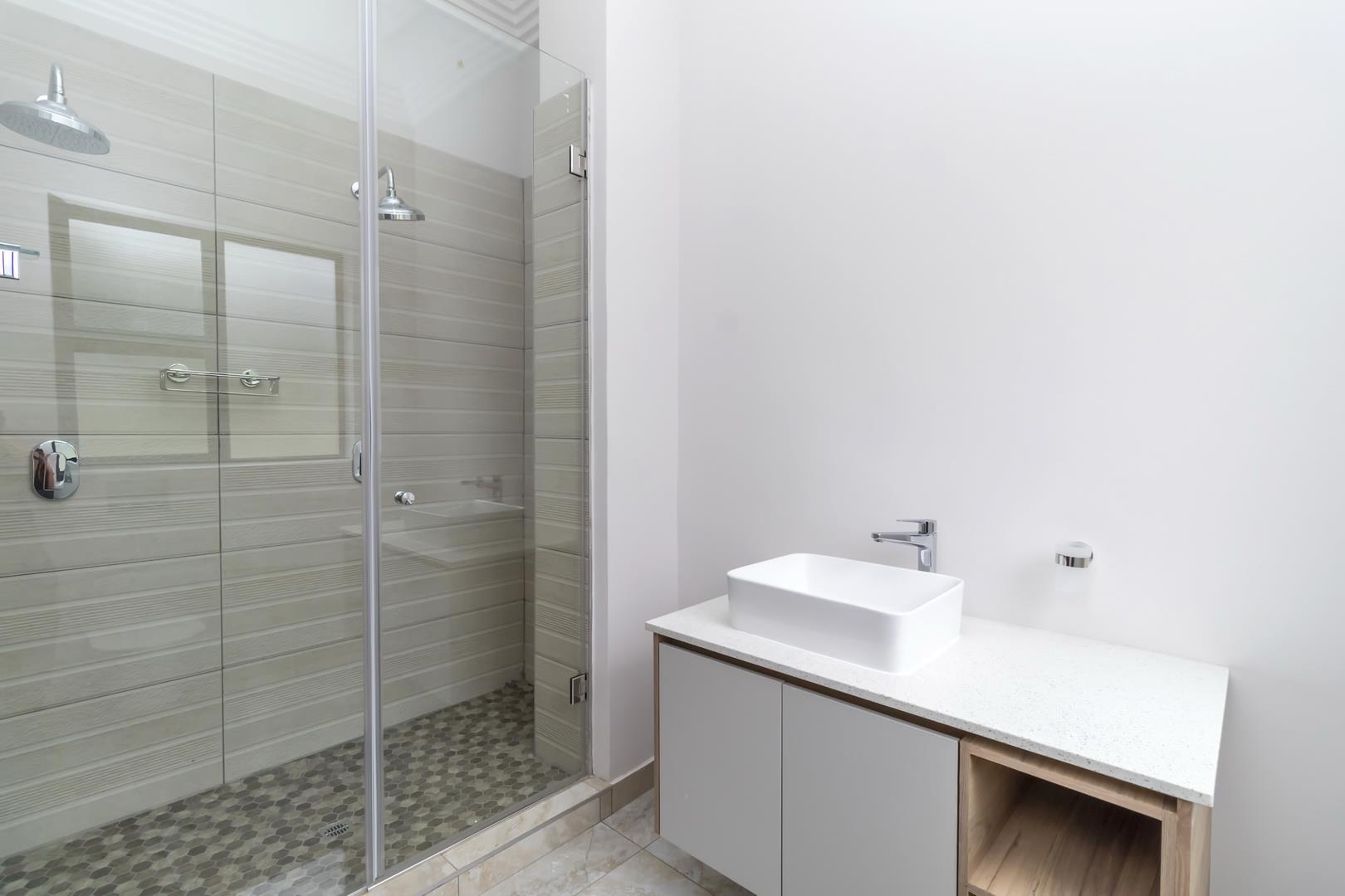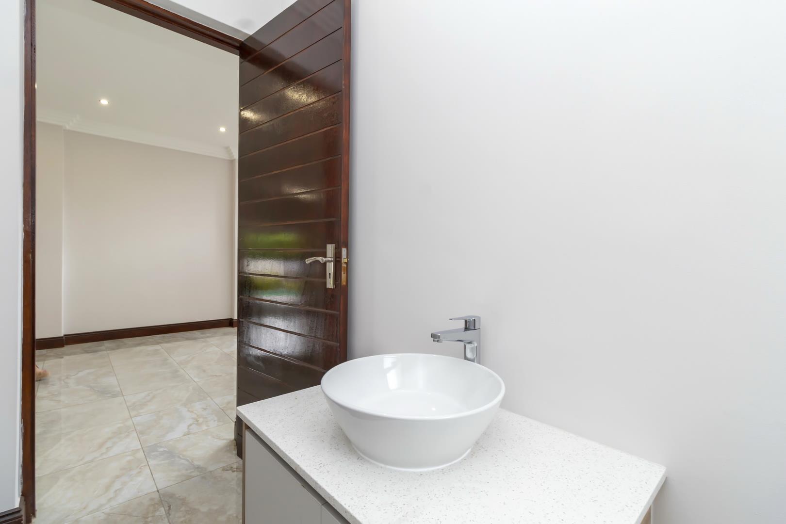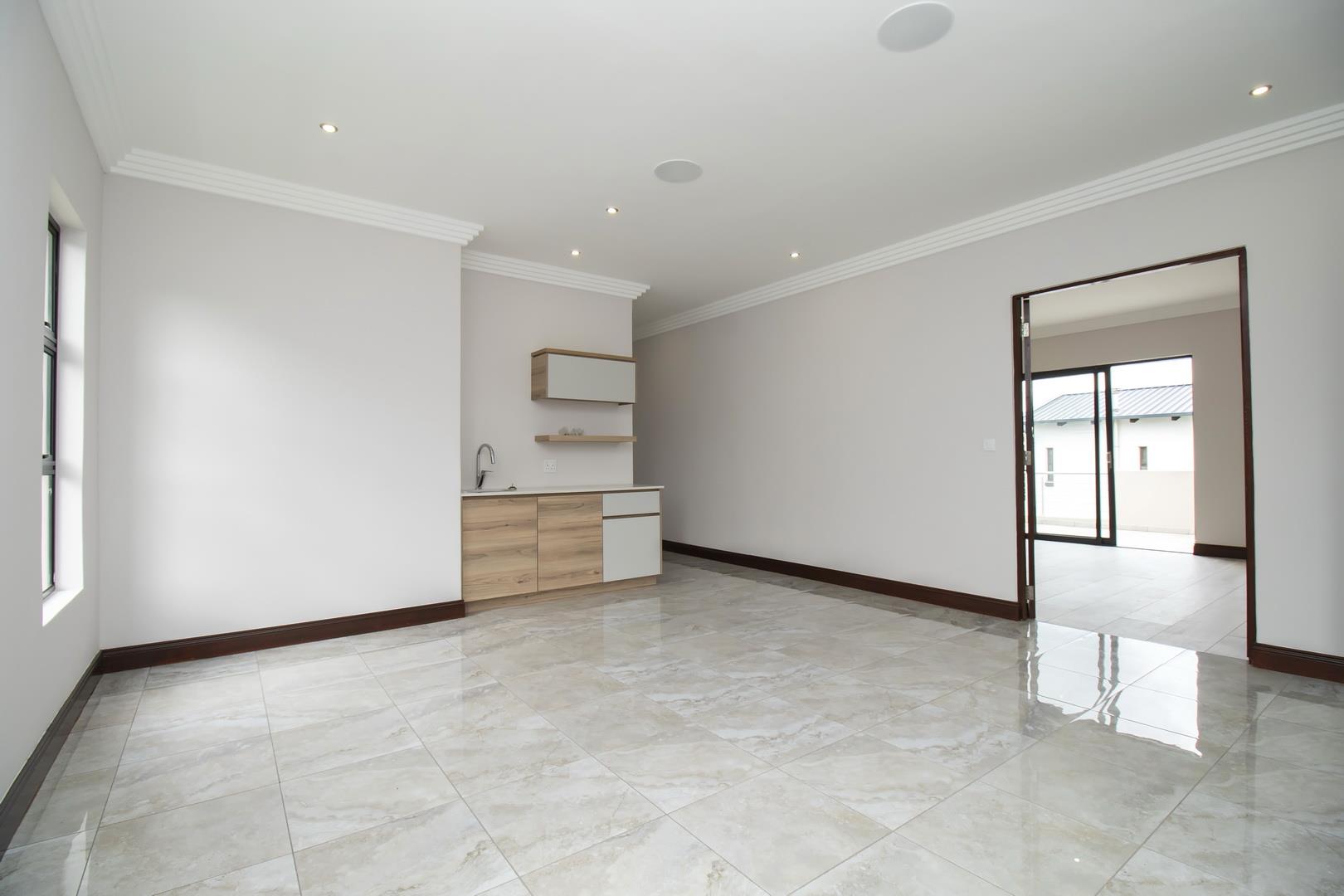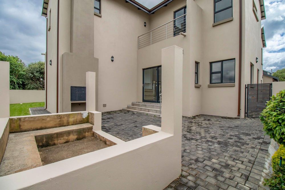The principal floor, open plan living area allows for glamorous formal entertaining or a relaxed luxurious informal setting. The gourmet kitchen, complete with integrated appliances, is an integral feature as well as the open plan formal lounge and dining room with own gas fireplace. This area is further enhanced when the tall stacker doors are opened onto the garden, swimming pool, boma, covered patio and built in braais. The remaining living spaces include a guest cloak room and an en-suite guest bedroom, a study and a built-in bar.
