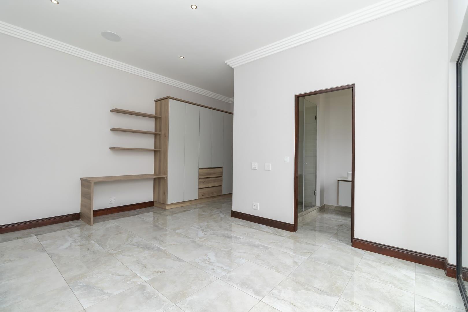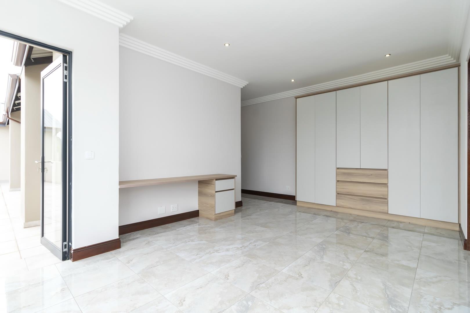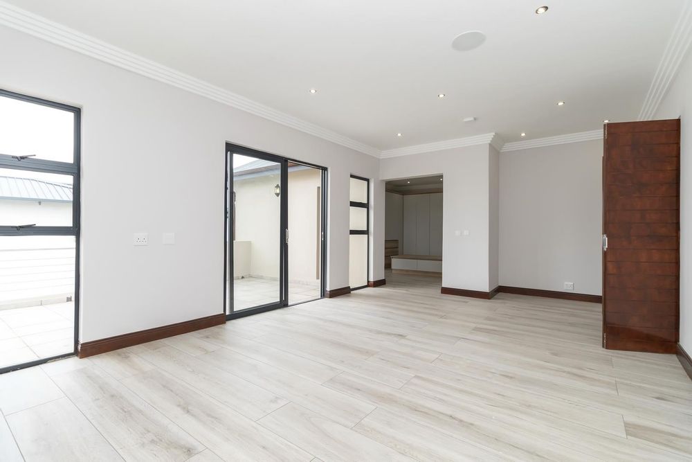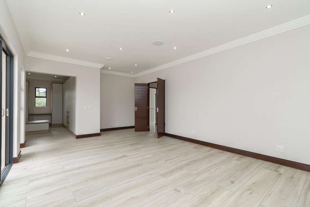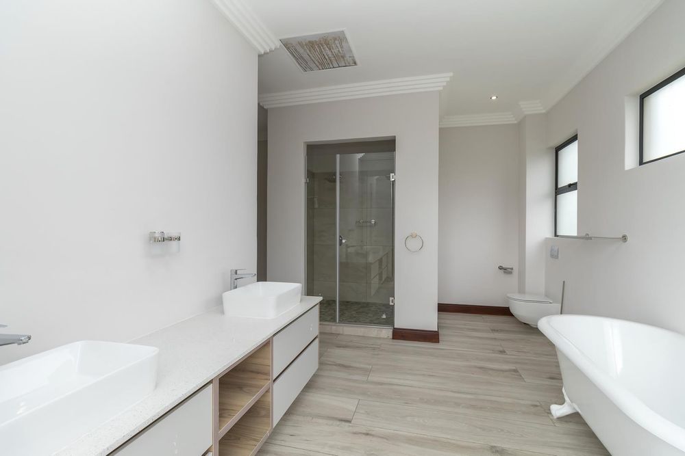 The romantic master suite has got to be the most glorious surprise factor of the home. Exceptional floor space allocated to a pristine dressing room, beautifully appointed open plan bathroom and luxurious bedroom area. True to form, four automated garages, staff accommodation, Solar Panels and Inverter, Gas and fiber connected, Control 4 (lights and sound), complements this residence to be appreciated by the discerning buyer.